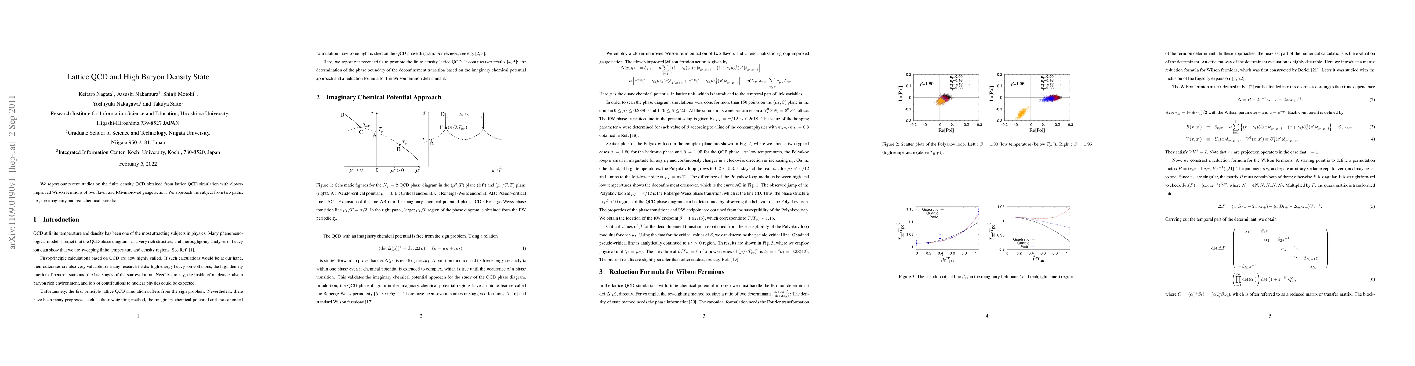 Researchers used lattice QCD simulations to study the behavior of quarks in high-baryon density states, finding results using both imaginary and real chemical potentials.
