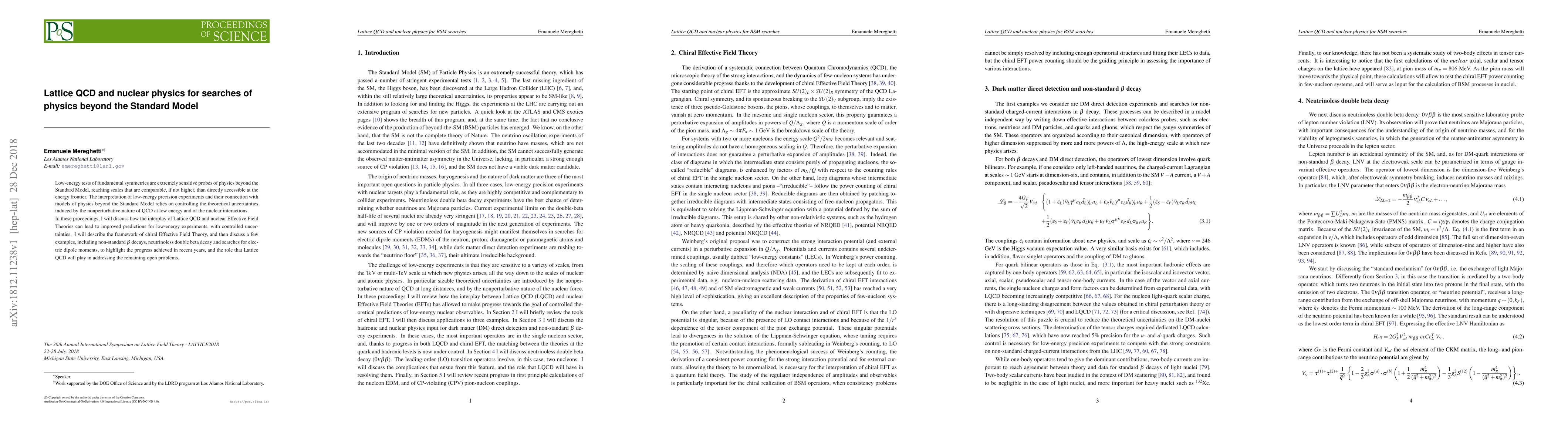 This paper discusses how Lattice QCD and nuclear Effective Field Theories can improve predictions for low-energy experiments probing physics beyond the Standard Model, with a focus on controlled theoretical uncertainties. It highlights recent progress in areas such as non-standard beta decays, neutrinoless double beta decay, and electric dipole moments.