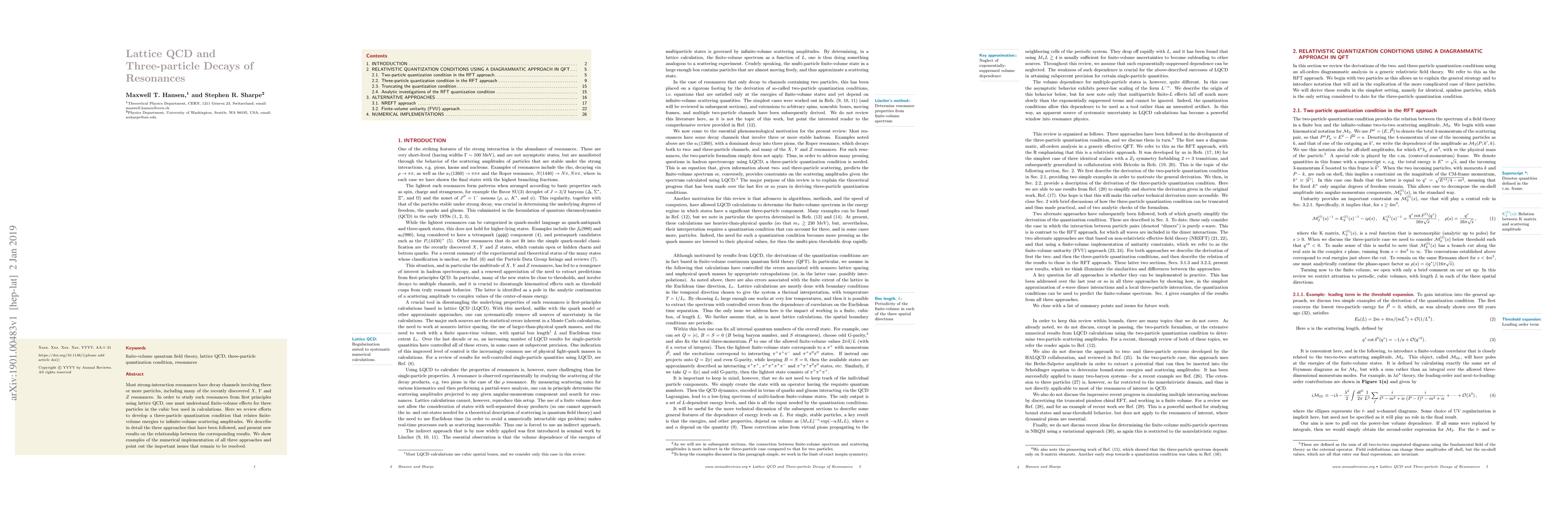 This paper reviews efforts to develop a three-particle quantization condition in lattice QCD to study resonances decaying into three or more particles, presenting three approaches and their numerical implementations, while highlighting unresolved issues and the importance of finite-volume effects.