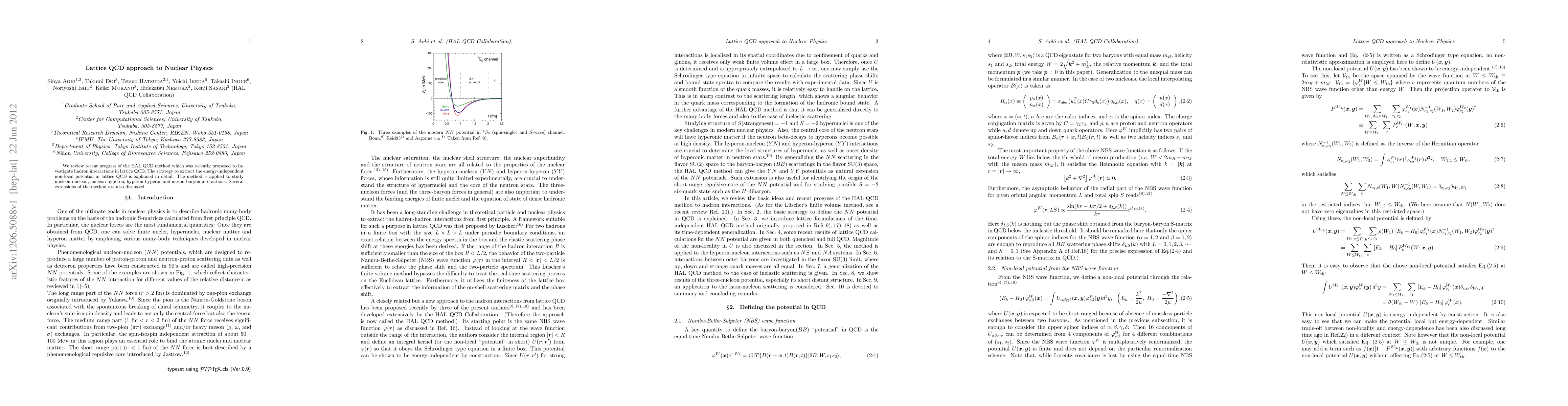 This paper reviews advancements in the HAL QCD method for lattice QCD, focusing on extracting energy-independent non-local potentials to study various hadron interactions, including nucleon-nucleon, nucleon-hyperon, hyperon-hyperon, and meson-baryon interactions. Several extensions of the method are also explored.