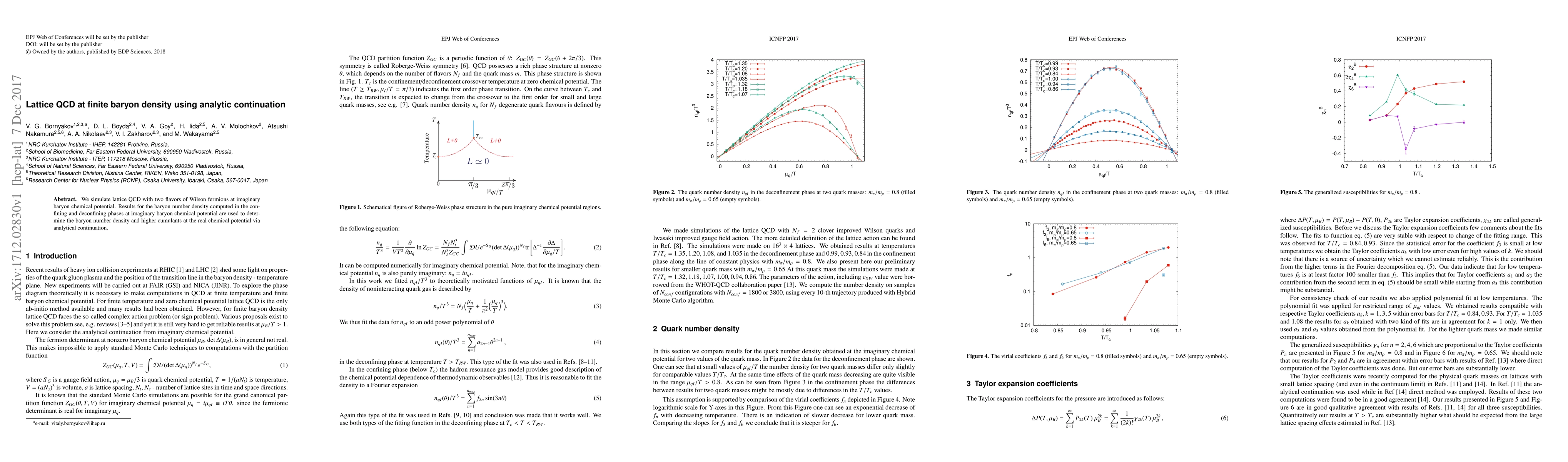 This study employs lattice QCD simulations with Wilson fermions at imaginary baryon chemical potential to determine baryon number density and higher cumulants in both confining and deconfining phases, utilizing analytic continuation to translate results to real chemical potential.
