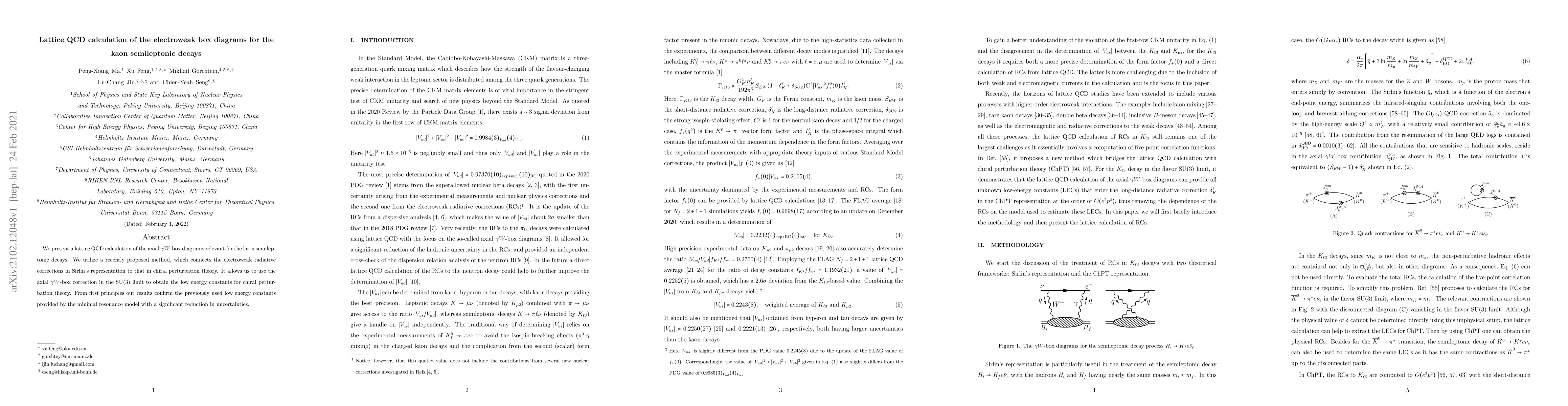 This paper presents a lattice QCD calculation of the axial $\gamma W$-box diagrams for kaon semileptonic decays, employing a new method linking electroweak corrections to chiral perturbation theory. The results confirm previous low energy constants with reduced uncertainties.