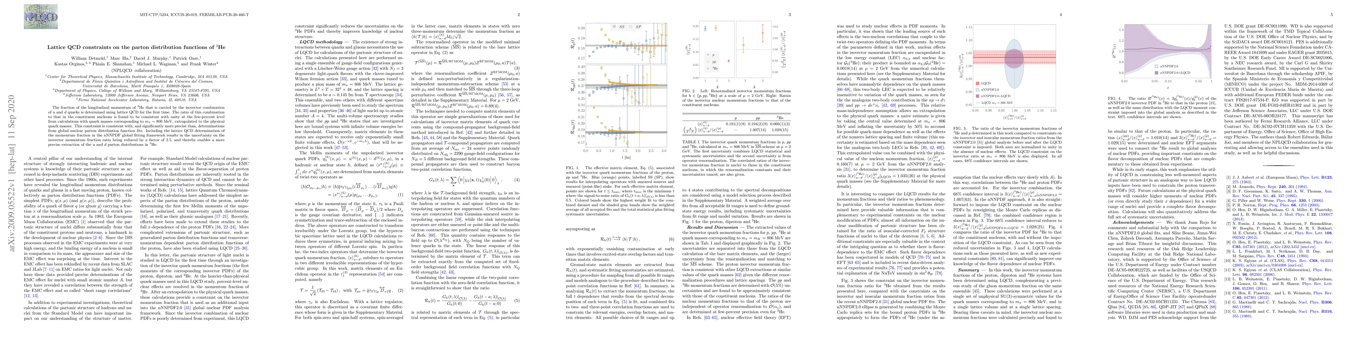 The fraction of the longitudinal momentum of ${}^3\text{He}$ that is carried by the isovector combination of $u$ and $d$ quarks is determined using lattice QCD for the first time. The ratio of this combination to that in the constituent nucleons is found to be consistent with unity at the few-percent level from calculations with quark masses corresponding to $m_\pi\sim 800$ MeV, extrapolated to the physical quark masses. This constraint is consistent with, and significantly more precise than, determinations from global nuclear parton distribution function fits. Including the lattice QCD determination of the momentum fraction in the nNNPDF global fitting framework results in the uncertainty on the isovector momentum fraction ratio being reduced by a factor of 2.5, and thereby enables a more precise extraction of the $u$ and $d$ parton distributions in ${}^3\text{He}$.