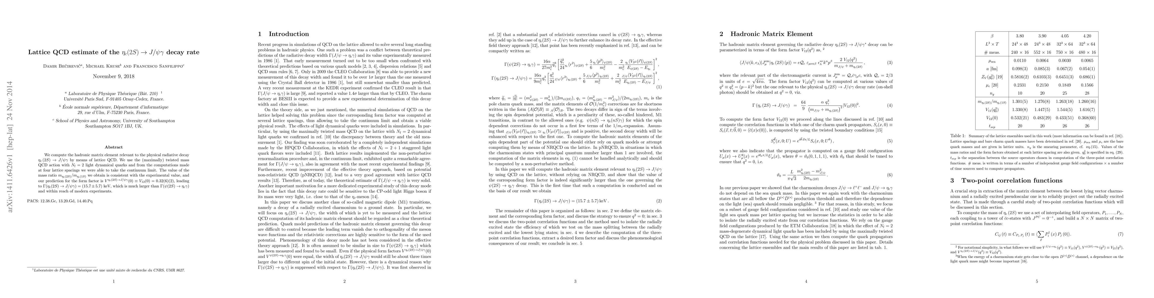 We compute the hadronic matrix element relevant to the physical radiative decay $\eta_{c}(2S)\to J/\psi\gamma$ by means of lattice QCD. We use the (maximally) twisted mass QCD action with Nf=2 light dynamical quarks and from the computations made at four lattice spacings we were able to take the continuum limit. The value of the mass ratio $m_{\eta_c(2S)}/m_{\eta_c(1S)}$ we obtain is consistent with the experimental value, and our prediction for the form factor is $V^{\eta_{c}(2S)\to J/\psi\gamma}(0)\equiv V_{12}(0)=0.32(6)(2)$, leading to $\Gamma(\eta_c (2S) \to J/\psi\gamma) = (15.7\pm 5.7)$ keV, which is much larger than $\Gamma(\psi (2S) \to \eta_c\gamma)$ and within reach of modern experiments.