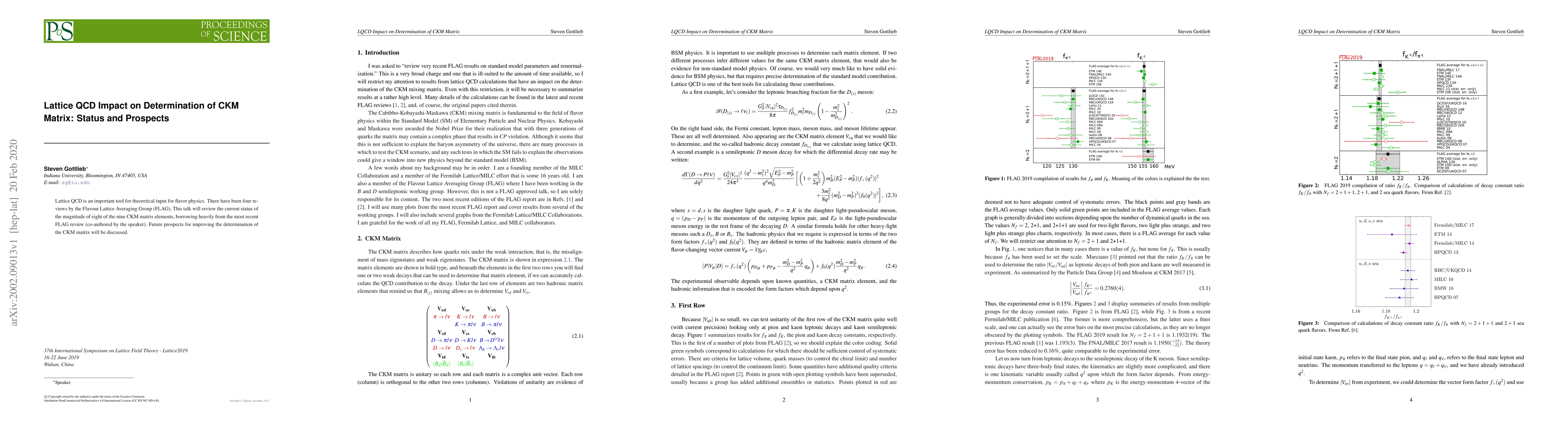 Lattice QCD is an important tool for theoretical input for flavor physics. There have been four reviews by the Flavour Lattice Averaging Group (FLAG). This talk will review the current status of the magnitude of eight of the nine CKM matrix elements, borrowing heavily from the most recent FLAG review (co-authored by the speaker). Future prospects for improving the determination of the CKM matrix will be discussed.
