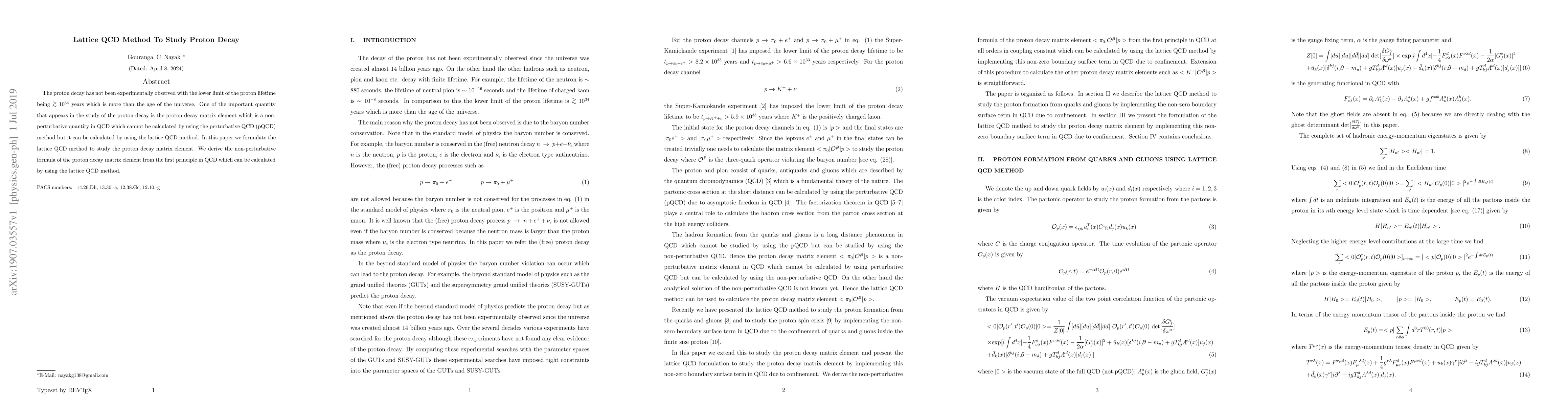 This paper formulates the lattice QCD method to calculate the proton decay matrix element, a non-perturbative quantity in QCD, which cannot be derived using perturbative QCD but can be computed via lattice QCD. The authors derive a non-perturbative formula for this matrix element from first principles in QCD.