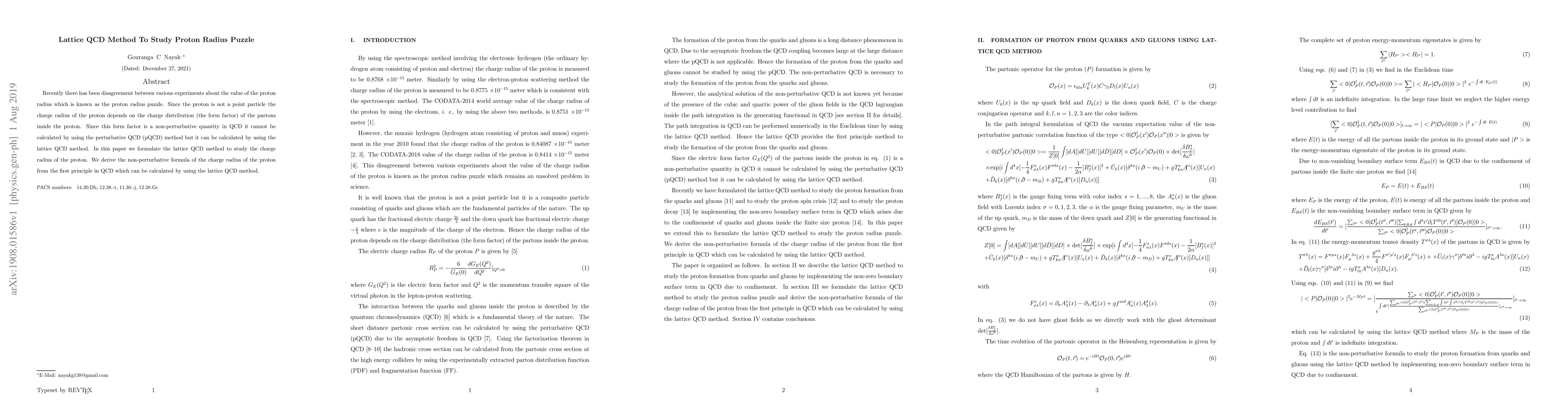 This paper employs lattice QCD to resolve the proton radius puzzle, deriving a non-perturbative formula for the proton's charge radius from first principles in QCD, as perturbative QCD is insufficient for this purpose.