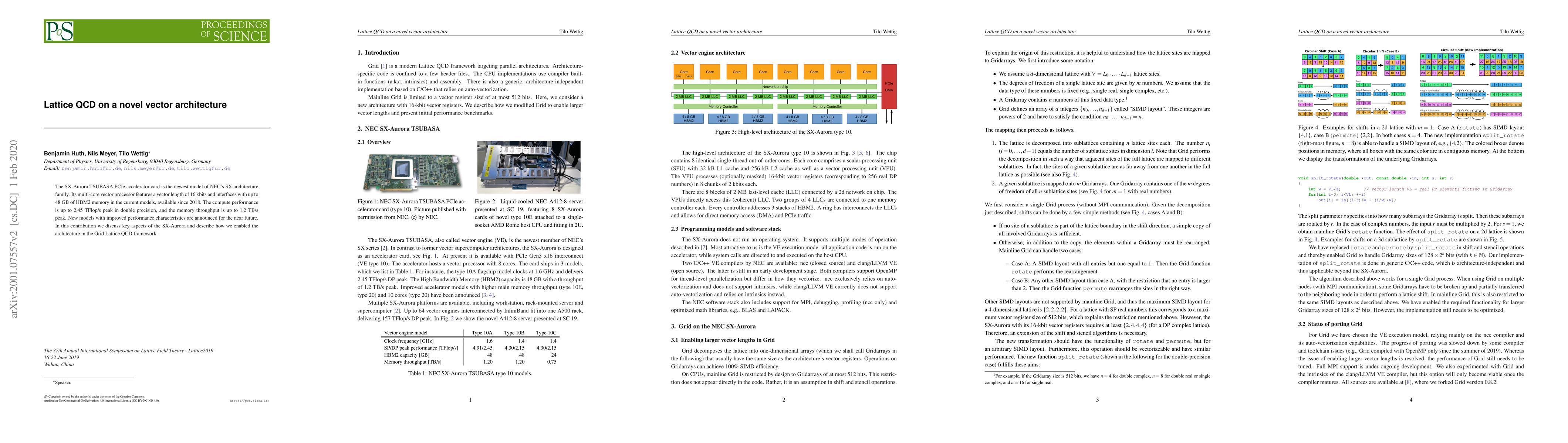 Researchers successfully integrated the SX-Aurora accelerator card into the Grid Lattice QCD framework to improve computational performance for lattice quantum chromodynamics simulations. This integration enables peak double precision performance of up to 2.45 TFlop/s.