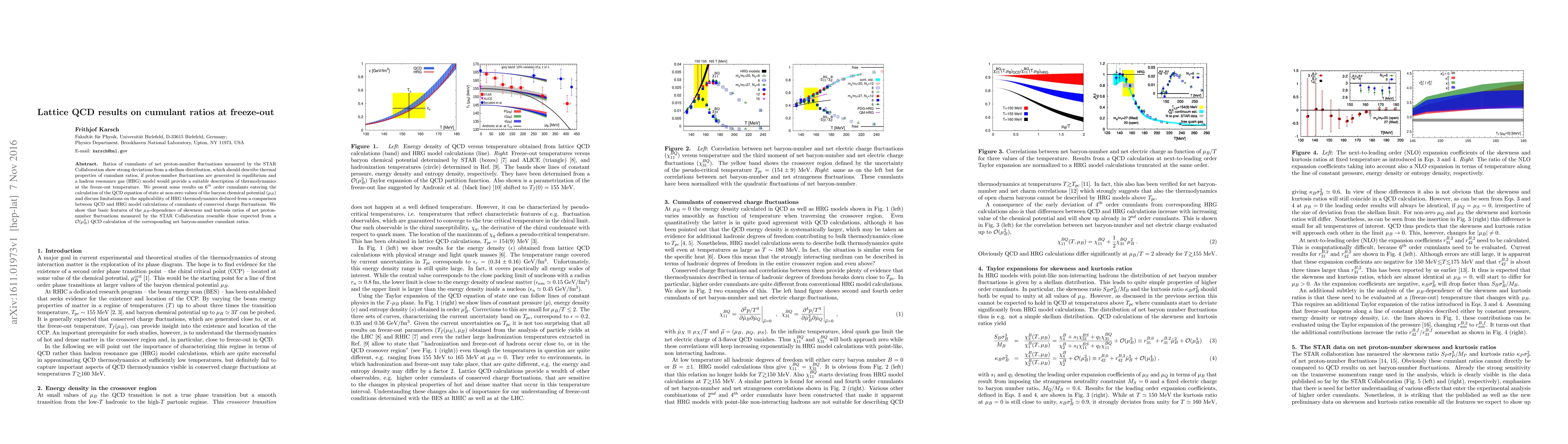 Ratios of cumulants of net proton-number fluctuations measured by the STAR Collaboration show strong deviations from a skellam distribution, which should describe thermal properties of cumulant ratios, if proton-number fluctuations are generated in equilibrium and a hadron resonance gas (HRG) model would provide a suitable description of thermodynamics at the freeze-out temperature. We present some results on sixth order cumulants entering the calculation of the QCD equation of state at non-zero values of the baryon chemical potential (mu_B) and discuss limitations on the applicability of HRG thermodynamics deduced from a comparison between QCD and HRG model calculations of cumulants of conserved charge fluctuations. We show that basic features of the $\mu_B$-dependence of skewness and kurtosis ratios of net proton-number fluctuations measured by the STAR Collaboration resemble those expected from a O(mu_B^2) QCD calculation of the corresponding net baryon-number cumulant ratios.