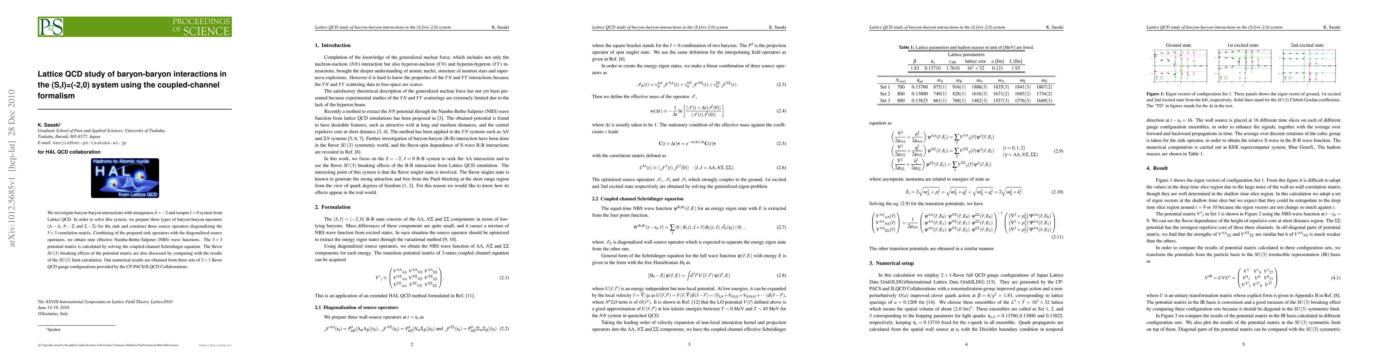 This study uses Lattice QCD to investigate baryon-baryon interactions with strangeness $S=-2$ and isospin $I=0$, obtaining effective wave functions and a potential matrix that reveal flavor SU(3) breaking effects.