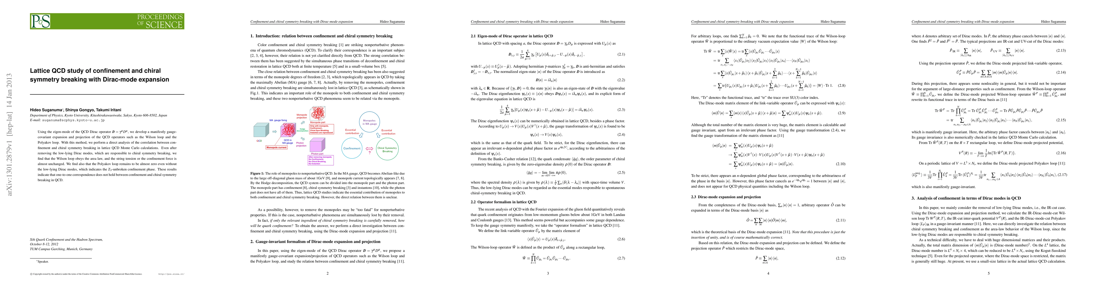 Using the eigen-mode of the QCD Dirac operator $\Slash D=\gamma^\mu D^\mu$, we develop a manifestly gauge-covariant expansion and projection of the QCD operators such as the Wilson loop and the Polyakov loop. With this method, we perform a direct analysis of the correlation between confinement and chiral symmetry breaking in lattice QCD Monte Carlo calculations. Even after removing the low-lying Dirac modes, which are responsible to chiral symmetry breaking, we find that the Wilson loop obeys the area law, and the string tension or the confinement force is almost unchanged. We find also that the Polyakov loop remains to be almost zero even without the low-lying Dirac modes, which indicates the Z_3-unbroken confinement phase. These results indicate that one-to-one correspondence does not hold between confinement and chiral symmetry breaking in QCD.