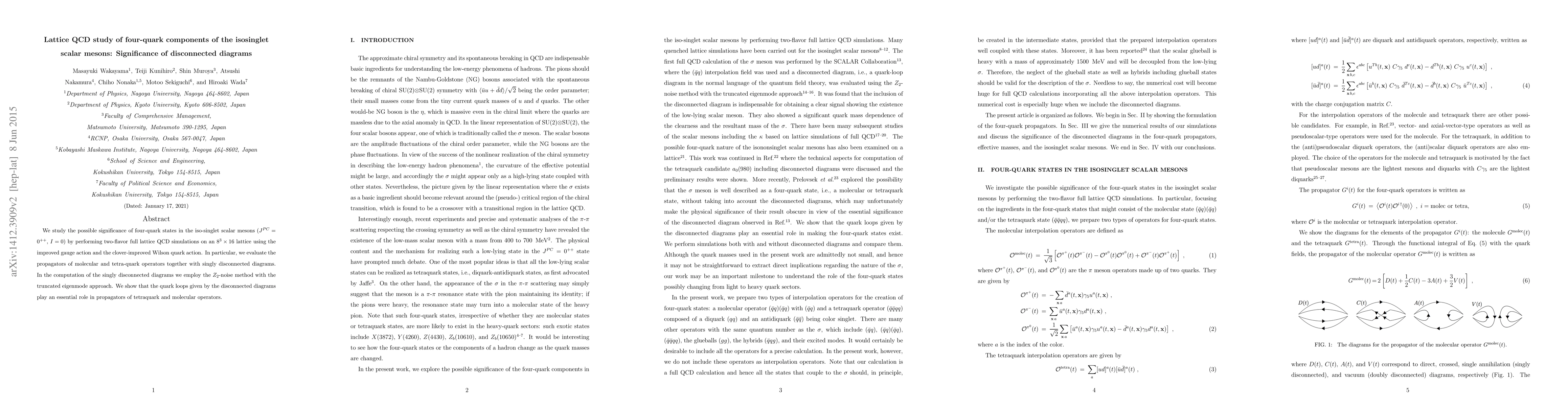 This paper investigates four-quark states in iso-singlet scalar mesons using lattice QCD simulations, highlighting the importance of disconnected diagrams. The study reveals that disconnected quark loops significantly influence the propagators of both tetraquark and molecular operators.