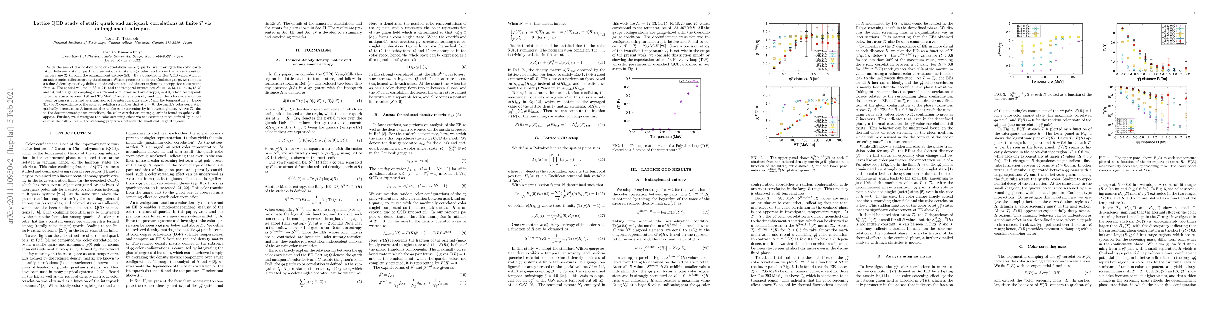 This study uses lattice QCD to analyze color correlations between static quark-antiquark pairs at various temperatures, employing entanglement entropy to quantify these correlations. Below the critical temperature, color correlations decrease with distance due to color screening, while above the critical temperature, these correlations quickly vanish due to deconfinement.