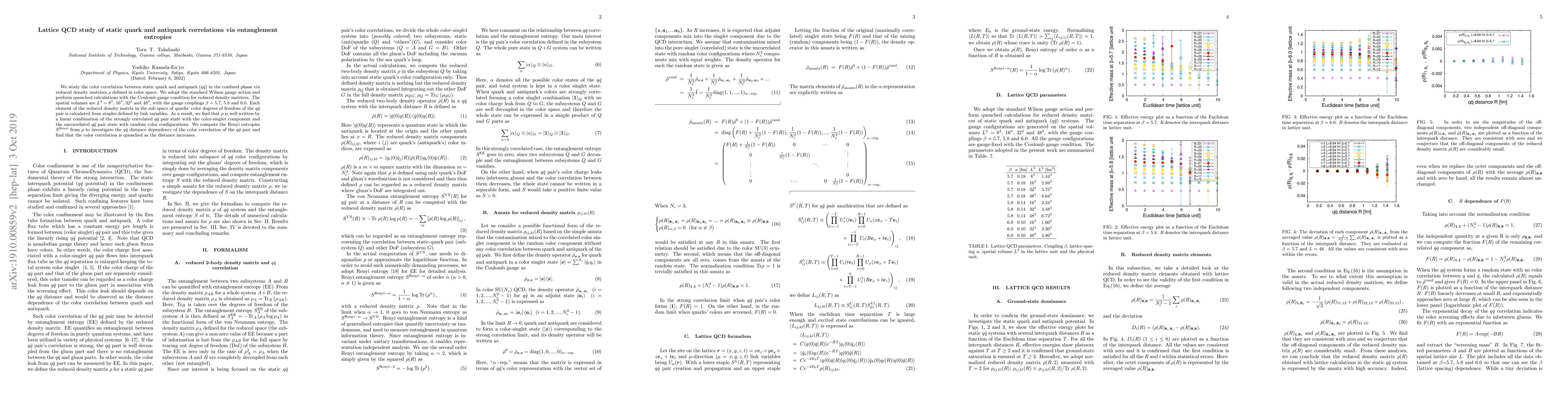 This paper investigates the color correlation between static quark and antiquark pairs in the confined phase using lattice QCD, employing reduced density matrices and Renyi entropies to analyze the entanglement and distance dependence of color correlations. The study finds that color correlation diminishes with increasing distance between the quark-antiquark pair.