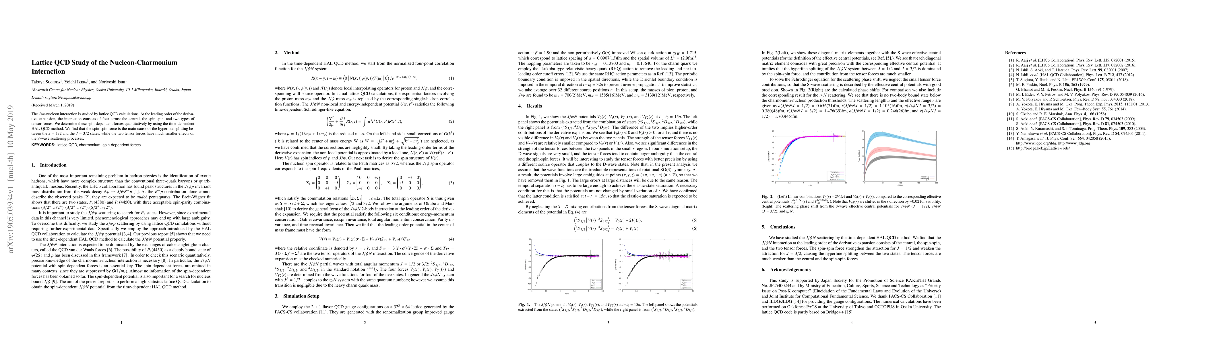 This study uses lattice QCD to quantify the $J/\psi$-nucleon interaction, identifying four leading terms: central, spin-spin, and two tensor forces. The spin-spin force is found to primarily drive the hyperfine splitting between $J=1/2$ and $J=3/2$ states, while tensor forces have minimal impact on S-wave scattering.