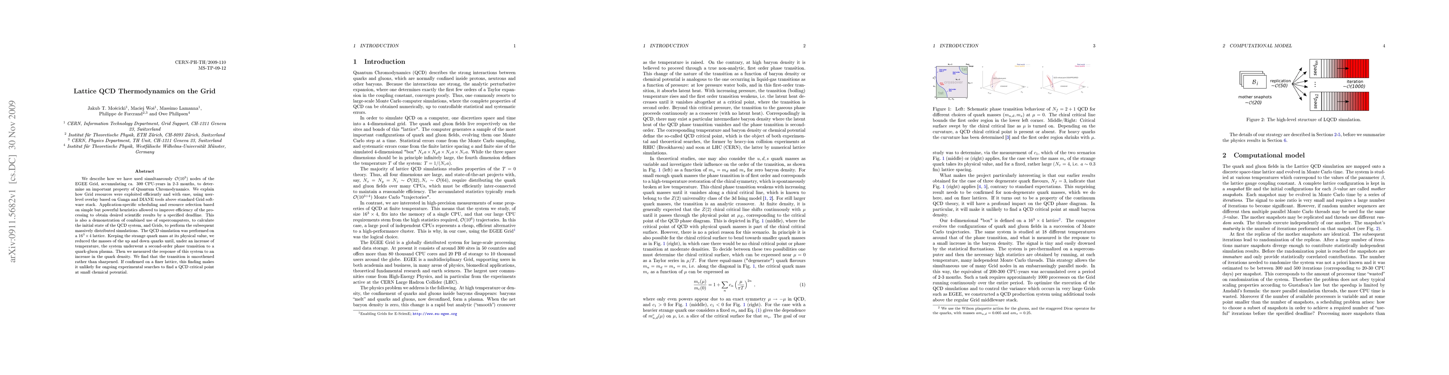We describe how we have used simultaneously ${\cal O}(10^3)$ nodes of the EGEE Grid, accumulating ca. 300 CPU-years in 2-3 months, to determine an important property of Quantum Chromodynamics. We explain how Grid resources were exploited efficiently and with ease, using user-level overlay based on Ganga and DIANE tools above standard Grid software stack. Application-specific scheduling and resource selection based on simple but powerful heuristics allowed to improve efficiency of the processing to obtain desired scientific results by a specified deadline. This is also a demonstration of combined use of supercomputers, to calculate the initial state of the QCD system, and Grids, to perform the subsequent massively distributed simulations. The QCD simulation was performed on a $16^3\times 4$ lattice. Keeping the strange quark mass at its physical value, we reduced the masses of the up and down quarks until, under an increase of temperature, the system underwent a second-order phase transition to a quark-gluon plasma. Then we measured the response of this system to an increase in the quark density. We find that the transition is smoothened rather than sharpened. If confirmed on a finer lattice, this finding makes it unlikely for ongoing experimental searches to find a QCD critical point at small chemical potential.