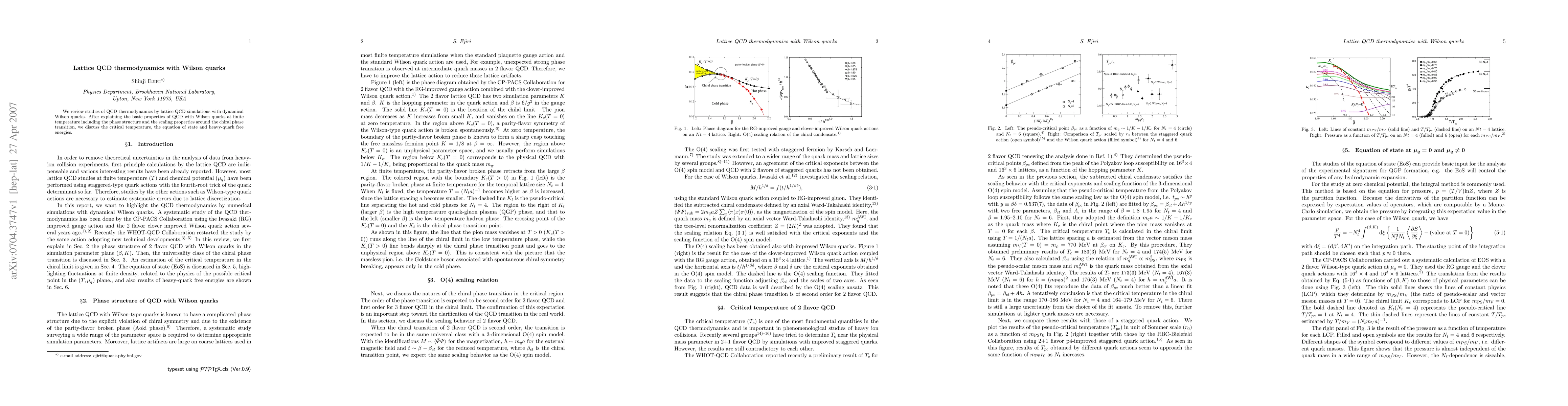 This paper reviews lattice QCD simulations utilizing dynamical Wilson quarks to study QCD thermodynamics, focusing on the phase structure, critical temperature, and equation of state, particularly around the chiral phase transition. It also examines heavy-quark free energies in these conditions.