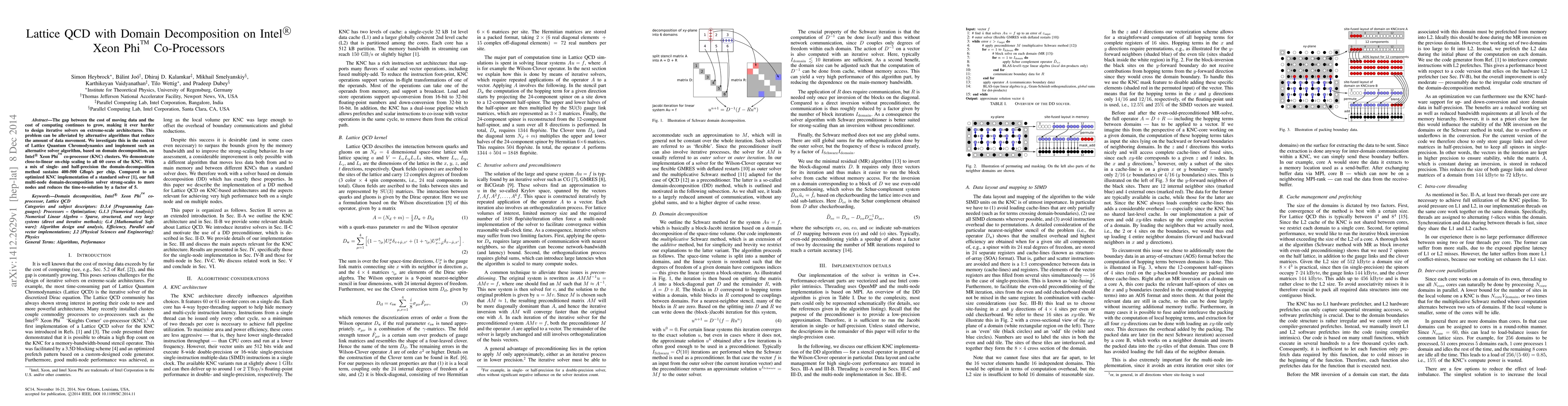 This paper explores an alternative domain decomposition algorithm for Lattice Quantum Chromodynamics on Intel Xeon Phi co-processors to reduce data movement costs. The proposed method achieves close-to-linear scaling on a KNC chip and outperforms a standard solver by reducing time-to-solution by a factor of 5.