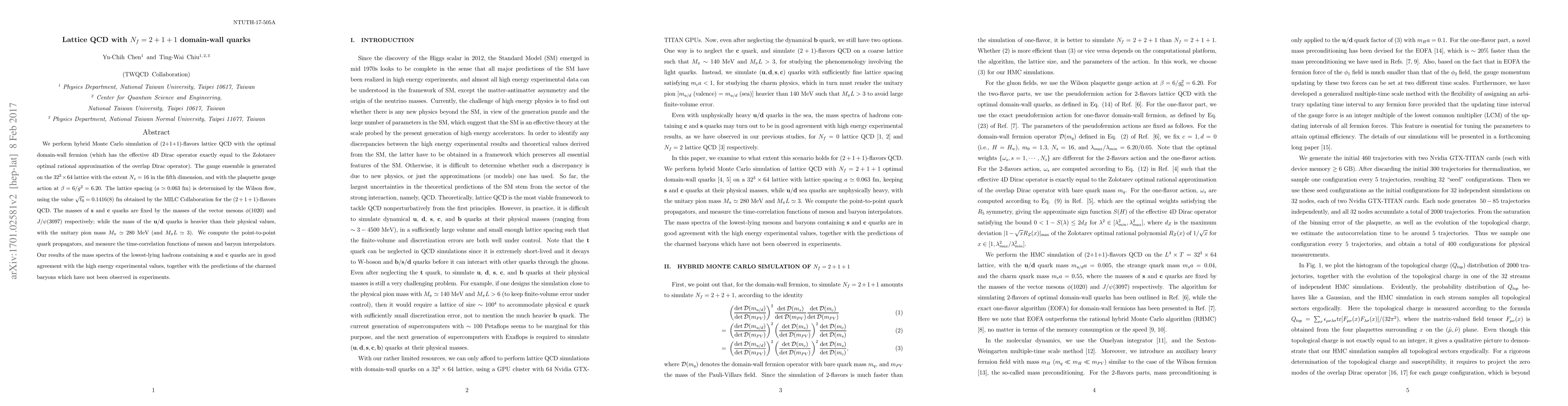 This paper presents a hybrid Monte Carlo simulation of (2+1+1)-flavor lattice QCD using optimal domain-wall fermions, generating a gauge ensemble on a 32^3 × 64 lattice. The study computes quark propagators and measures meson and baryon time-correlation functions, achieving good agreement between computed mass spectra and experimental values.