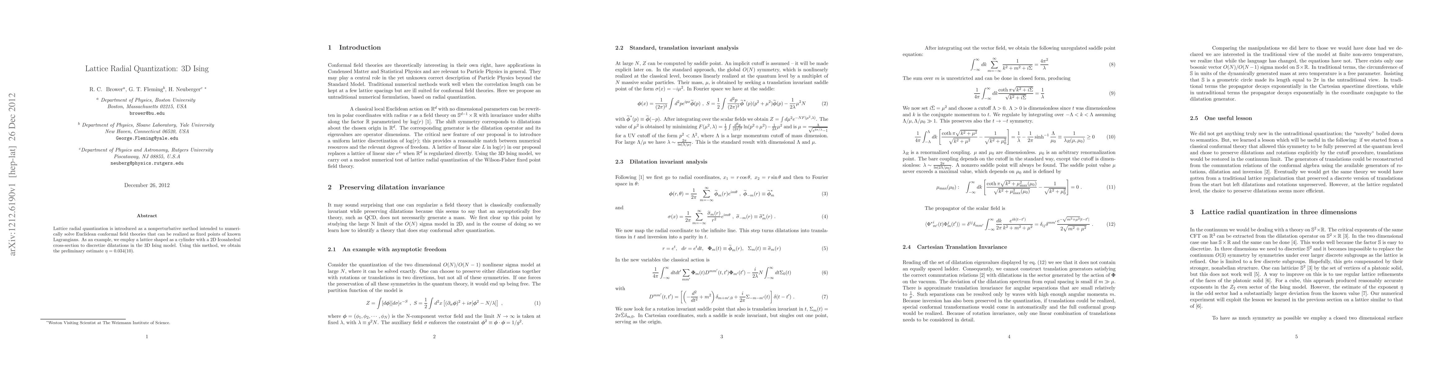 Researchers introduced a method called Lattice Radial Quantization to solve 3D Ising models, achieving an estimate of eta=0.034(10) in a preliminary calculation.