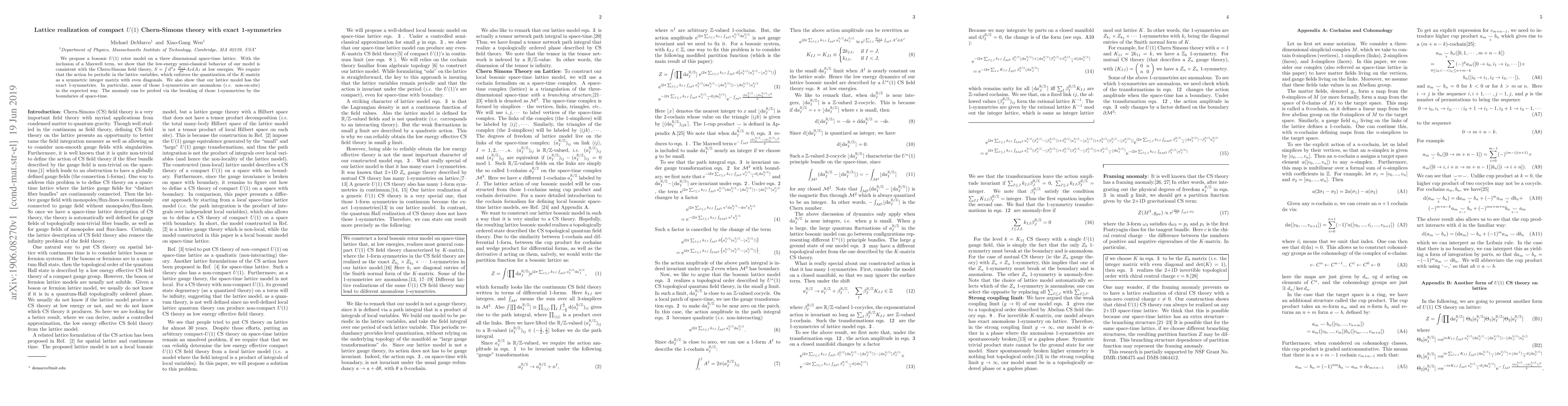 We propose a bosonic $U(1)$ rotor model on a three dimensional space-time lattice. With the inclusion of a Maxwell term, we show that the low-energy semi-classical behavior of our model is consistent with the Chern-Simons field theory, $S= \int \text{d}^3 x\ \frac{K_{IJ}}{4\pi} A_I \text{d} A_J$ at low energies. We require that the action be periodic in the lattice variables, which enforces the quantization of the $K$-matrix as a symmetric integer matrix with even diagonals. We also show that our lattice model has the exact $1$-symmetries. In particular, some of those 1-symmetries are anomalous (i.e. non-on-site) in the expected way. The anomaly can be probed via the breaking of those $1$-symmetries by the boundaries of space-time.