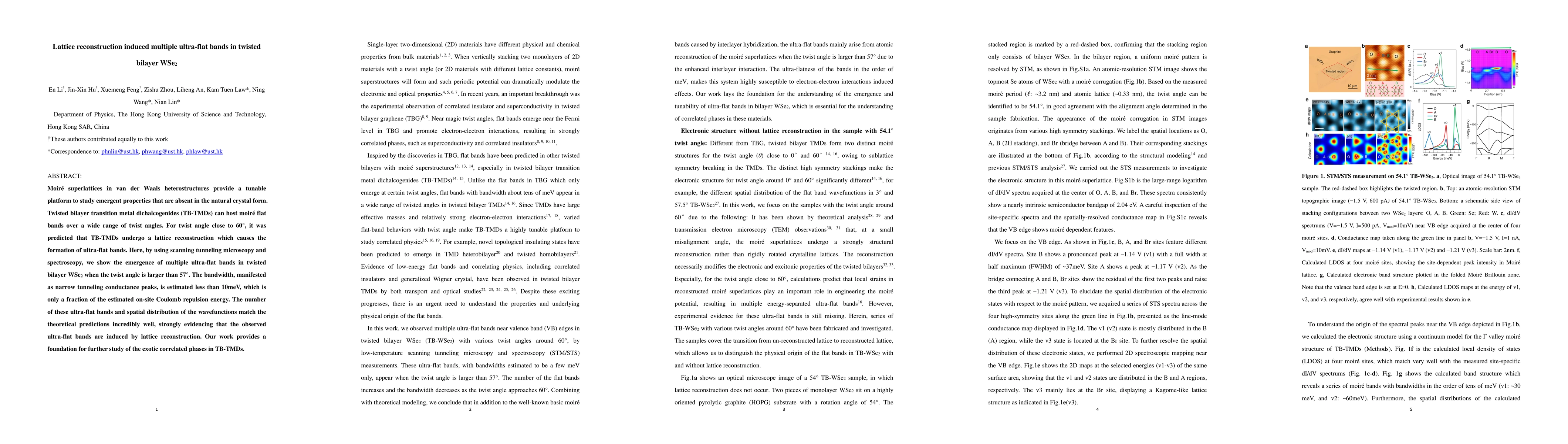 This study demonstrates the emergence of multiple ultra-flat bands in twisted bilayer WSe2 via lattice reconstruction when the twist angle exceeds 57°, using scanning tunneling microscopy and spectroscopy. The ultra-flat bands exhibit bandwidths less than 10 meV, confirming theoretical predictions of lattice reconstruction effects.
