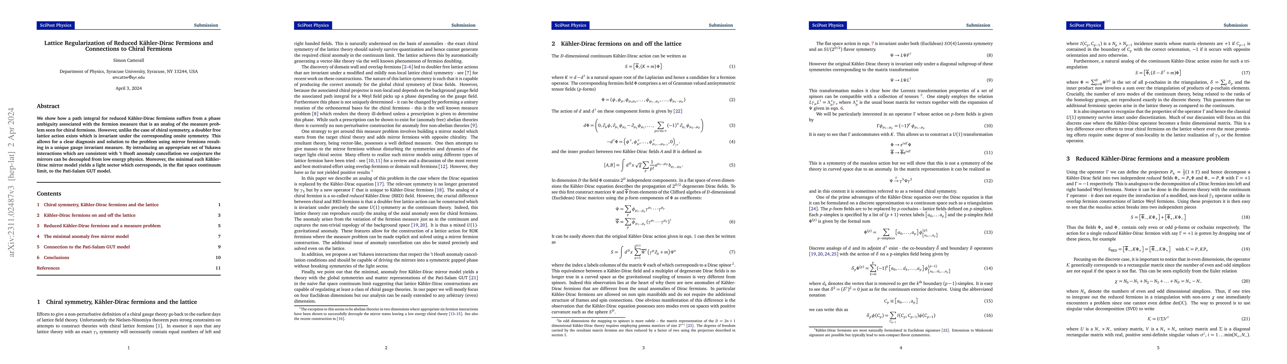 We show how a path integral for reduced K\"{a}hler-Dirac fermions suffers from a phase ambiguity associated with the fermion measure that is an analog of the measure problem seen for chiral fermions. However, unlike the case of chiral symmetry, a doubler free lattice action exists which is invariant under the corresponding onsite symmetry. This allows for a clear diagnosis and solution to the problem using mirror fermions resulting in a unique gauge invariant measure. By introducing an appropriate set of Yukawa interactions which are consistent with 't Hooft anomaly cancellation we conjecture the mirrors can be decoupled from low energy physics. Moreover, the minimal such K\"{a}hler-Dirac mirror model yields a light sector which corresponds, in the flat space continuum limit, to the Pati-Salam GUT model.