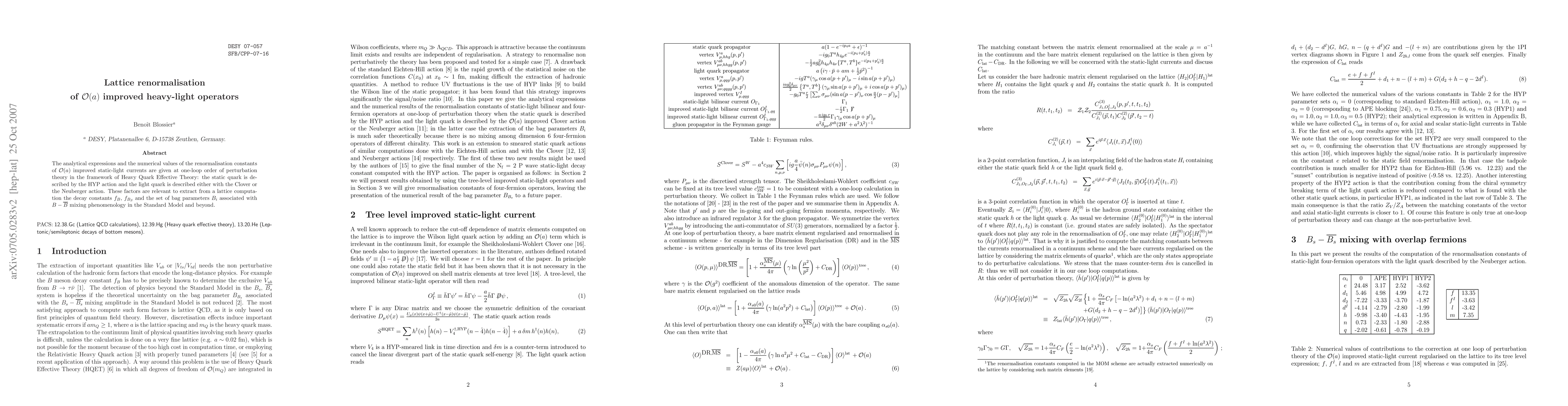 The analytical expressions and the numerical values of the renormalisation constants of ${\cal O}(a)$ improved static-light currents are given at one-loop order of perturbation theory in the framework of Heavy Quark Effective Theory: the static quark is described by the HYP action and the light quark is described either with the Clover or the Neuberger action. These factors are relevant to extract from a lattice computation the decay constants $f_B$, $f_{B_S}$ and the set of bag parameters $B_i$ associated with $B-\bar{B}$ mixing phenomenology in the Standard Model and beyond.