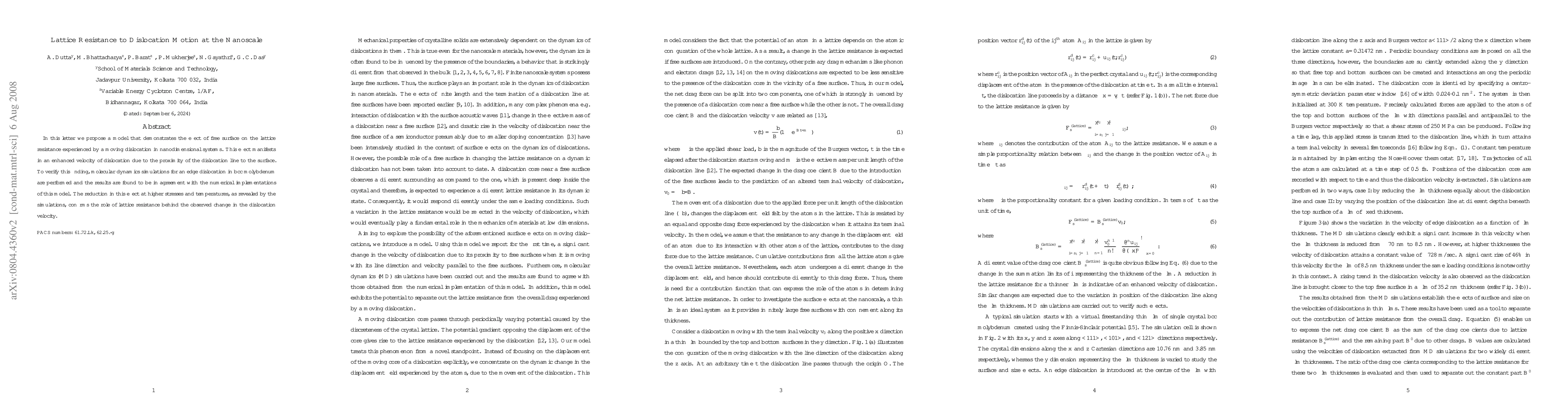A new model predicts that a free surface enhances dislocation motion in nanoscale systems, leading to faster dislocation velocities. Molecular dynamics simulations confirm this finding at the nanoscale.
