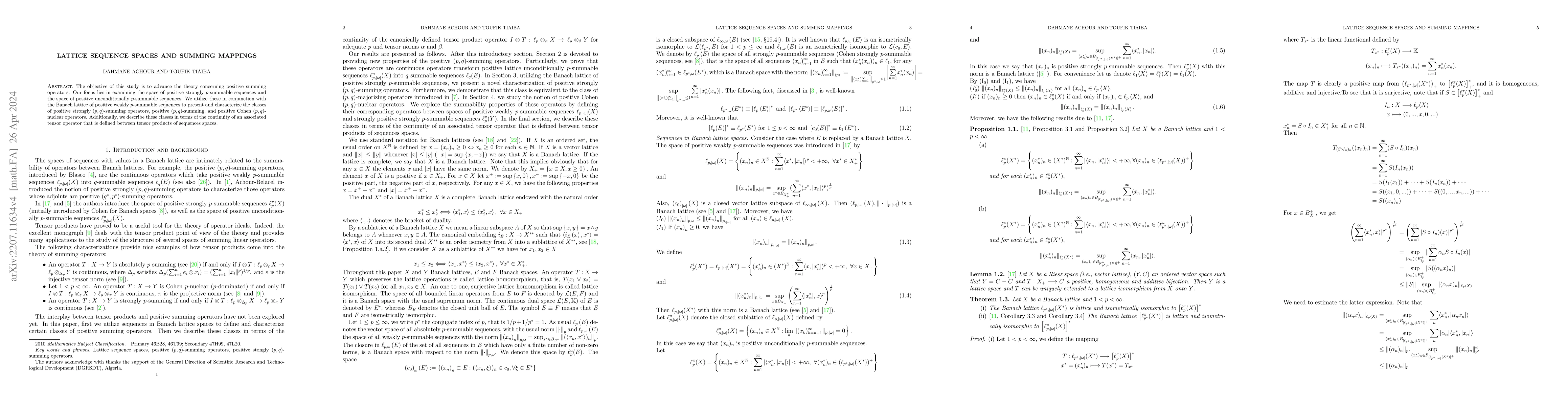 This study develops the theory of positive summing operators by characterizing lattice sequence spaces and associated classes of positive summing, strongly summing, and Cohen nuclear operators, using the continuity of a defined tensor operator between sequence space tensor products.