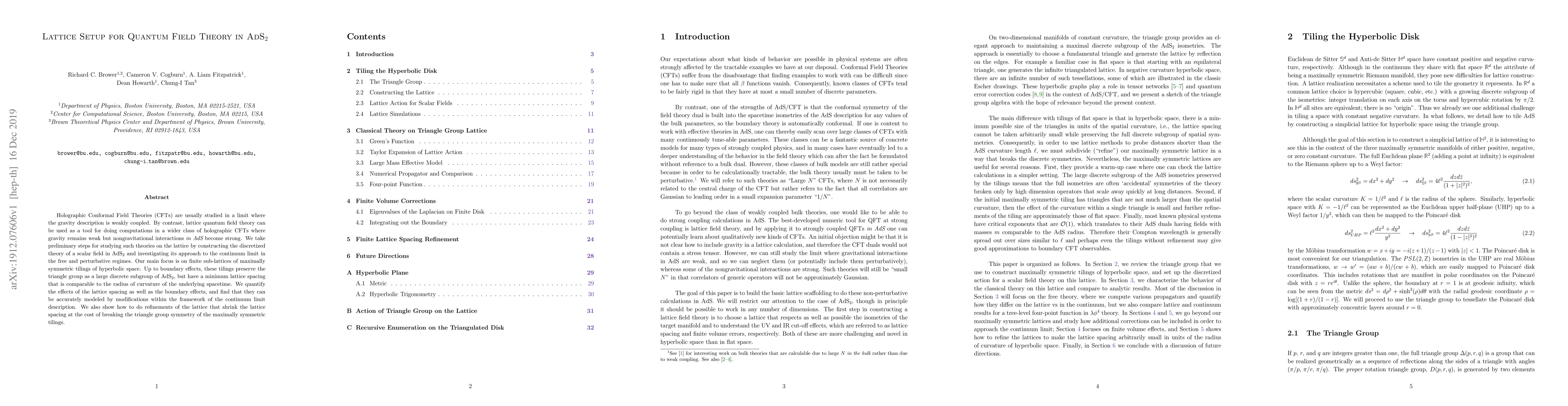 This paper constructs a lattice setup for quantum field theory in AdS$_2$ to study holographic CFTs where gravity is weak but nongravitational interactions are strong. The authors investigate the continuum limit of a discretized scalar field theory, focusing on finite sub-lattices that preserve the triangle group symmetry, and demonstrate that lattice and boundary effects can be modeled within the continuum framework.