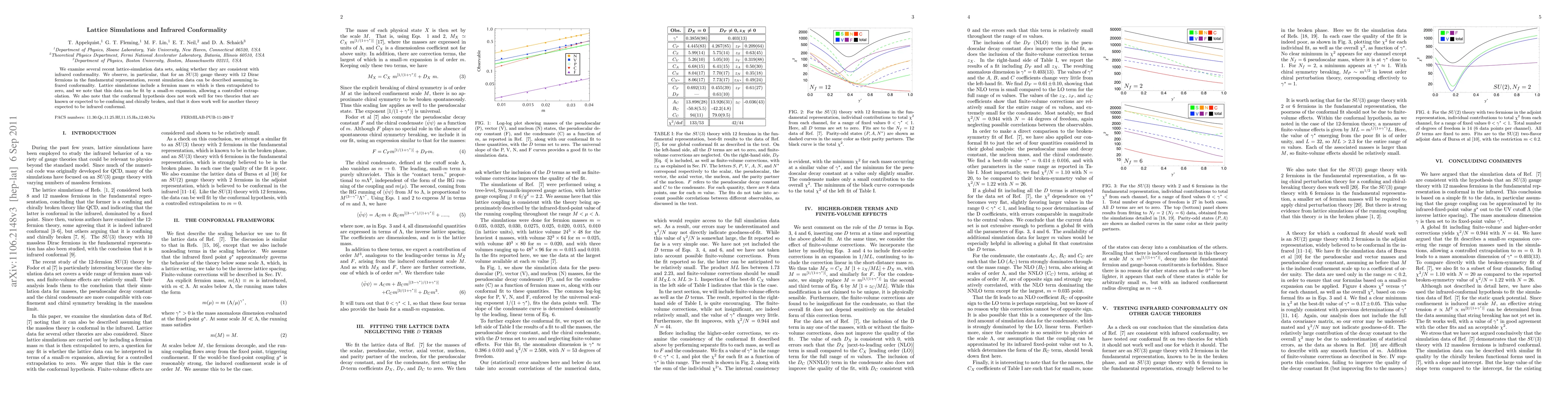 We examine several recent lattice-simulation data sets, asking whether they are consistent with infrared conformality. We observe, in particular, that for an SU(3) gauge theory with 12 Dirac fermions in the fundamental representation, recent simulation data can be described assuming infrared conformality. Lattice simulations include a fermion mass m which is then extrapolated to zero, and we note that this data can be fit by a small-m expansion, allowing a controlled extrapolation. We also note that the conformal hypothesis does not work well for two theories that are known or expected to be confining and chirally broken, and that it does work well for another theory expected to be infrared conformal.