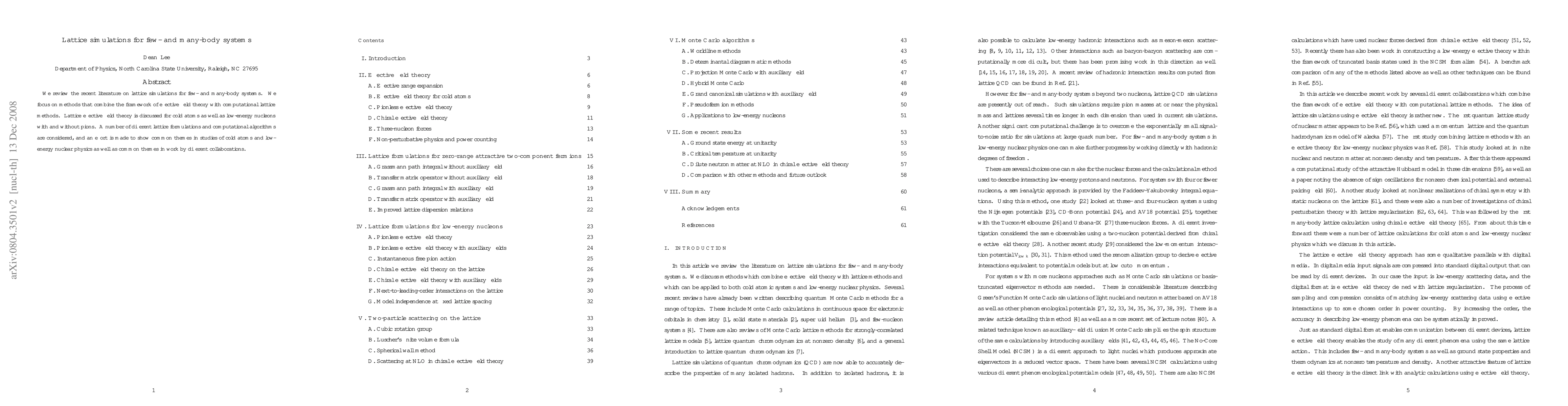 This paper reviews recent advancements in lattice simulations combining effective field theory with computational methods for both few- and many-body systems, focusing on cold atoms and low-energy nucleons, and highlighting common themes across different formulations and collaborations.