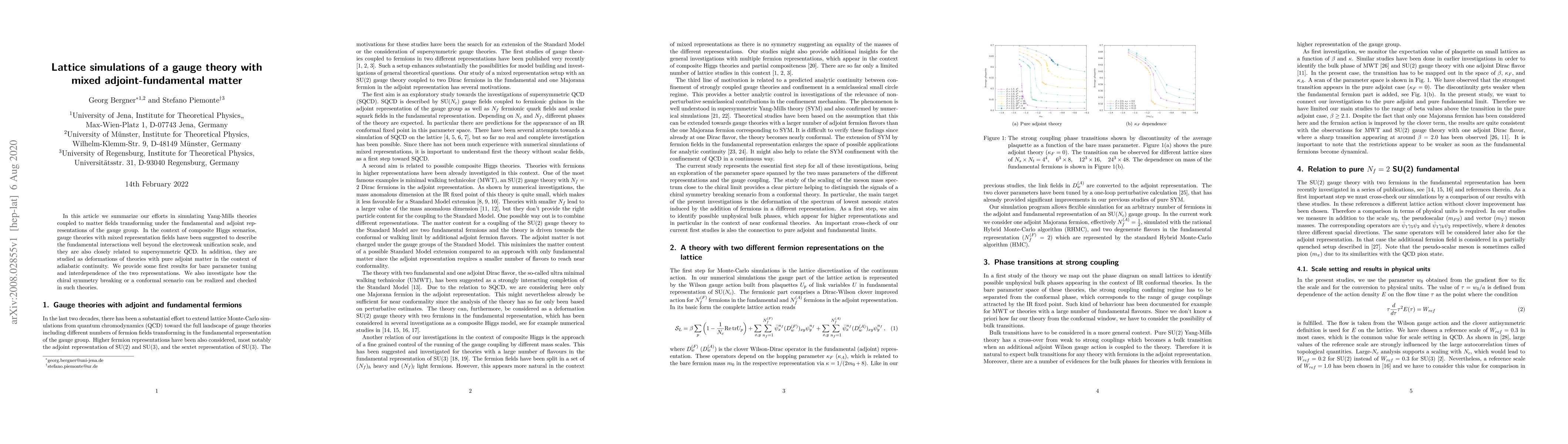 Researchers simulated a gauge theory with mixed adjoint-fundamental matter fields to explore composite Higgs scenarios and supersymmetric QCD, finding bare parameter tuning and interdependence between representations.
