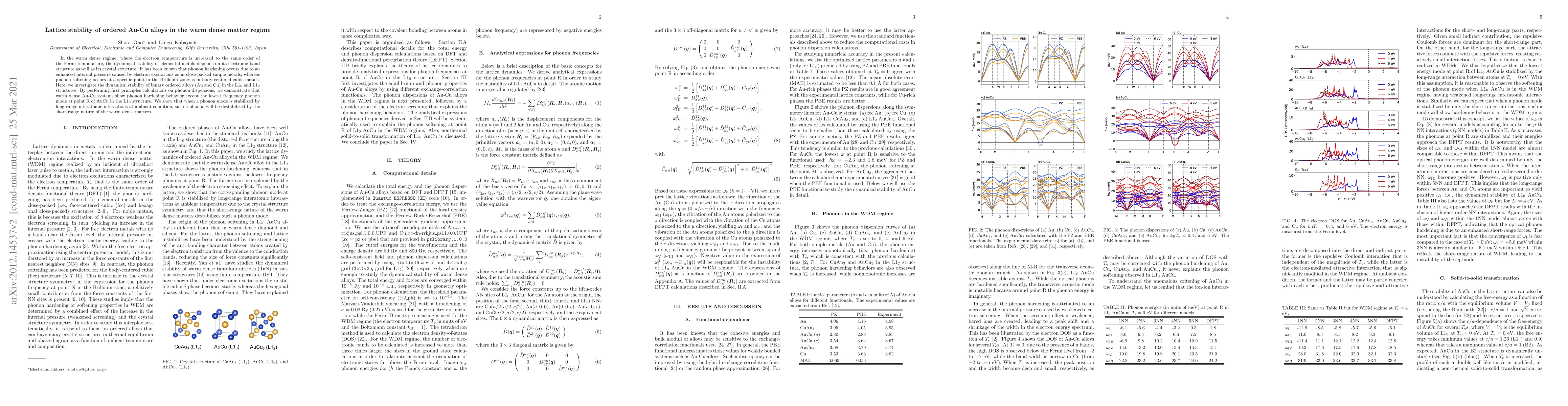In the warm dense regime, where the electron temperature is increased to the same order of the Fermi temperature, the dynamical stability of elemental metals depends on its electronic band structure as well as its crystal structure. It has been known that phonon hardening occurs due to an enhanced internal pressure caused by electron excitations as in close-packed simple metals, whereas phonon softening occurs at a specific point in the Brillouin zone as in body-centered cubic metals. Here, we investigate the dynamical stability of binary ordered alloys (Au and Cu) in the L1$_0$ and L1$_2$ structures. By performing first principles calculations on phonon dispersions, we demonstrate that warm dense Au-Cu systems show phonon hardening behavior except the lowest frequency phonon mode at point R of AuCu in the L1$_0$ structure. We show that when a phonon mode is stabilized by long-range interatomic interactions at ambient condition, such a phonon will be destabilized by the short-range nature of the warm dense matters.
