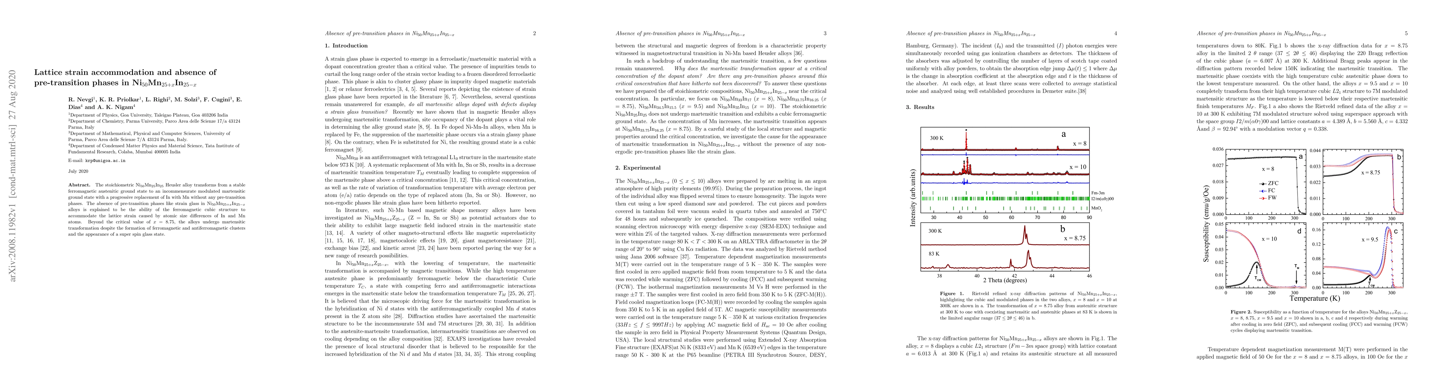 The stoichiometric Ni$_{50}$Mn$_{25}$In$_{25}$ Heusler alloy transforms from a stable ferromagnetic austenitic ground state to an incommensurate modulated martensitic ground state with a progressive replacement of In with Mn without any pre-transition phases. The absence of pre-transition phases like strain glass in Ni$_{50}$Mn$_{25+x}$In$_{25-x}$ alloys is explained to be the ability of the ferromagnetic cubic structure to accommodate the lattice strain caused by atomic size differences of In and Mn atoms. Beyond the critical value of $x$ = 8.75, the alloys undergo martensitic transformation despite the formation of ferromagnetic and antiferromagnetic clusters and the appearance of a super spin glass state.