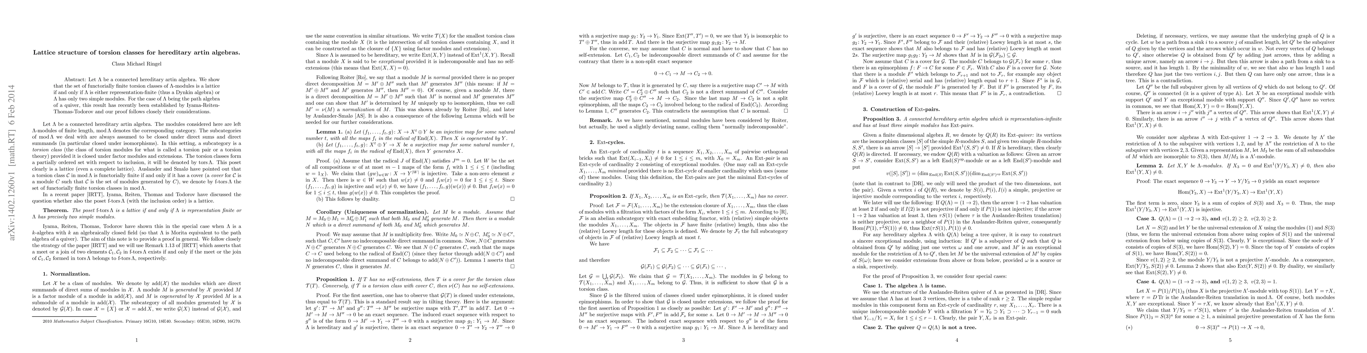 This paper demonstrates that the set of functorially finite torsion classes for modules over a connected hereditary artin algebra A forms a lattice if A is either representation-finite (a Dynkin algebra) or has only two simple modules. The authors follow the proof techniques from Iyama-Reiten-Thomas-Todorov for the case when A is the path algebra of a quiver.