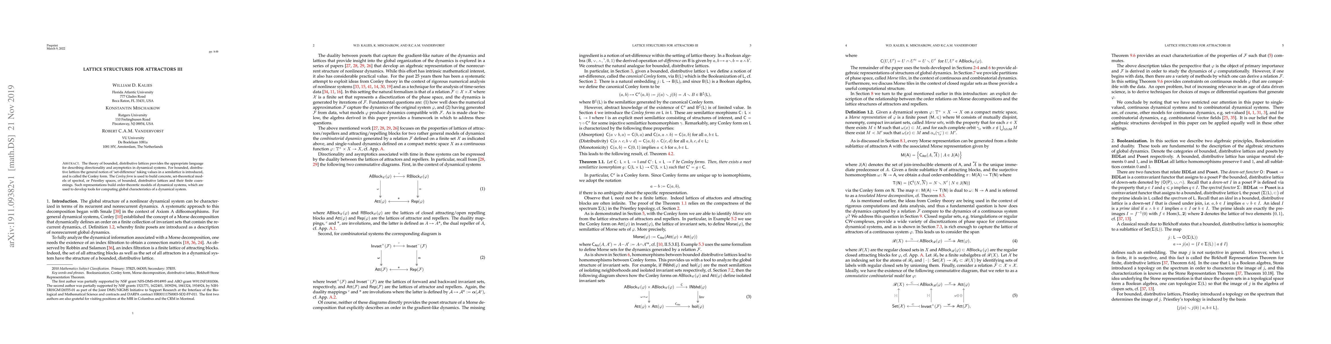 The paper employs the theory of bounded, distributive lattices to describe directionality and asymptotics in dynamical systems, introducing the Conley form as a set-difference operator for such lattices.