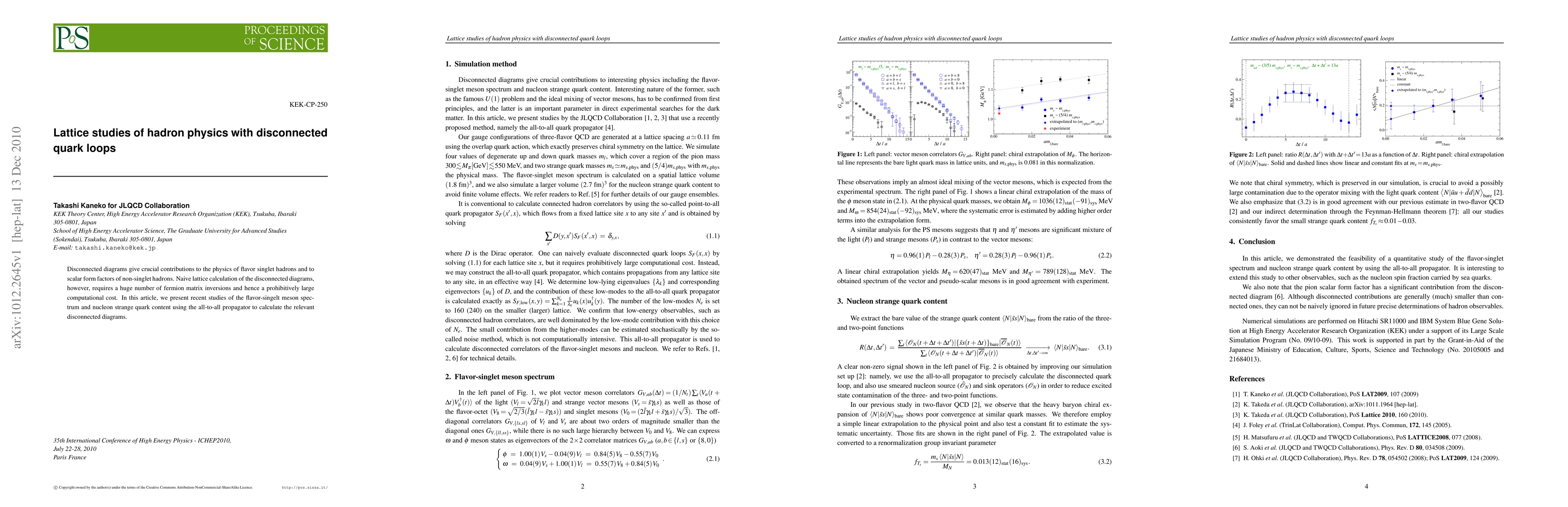 Disconnected diagrams give crucial contributions to the physics of flavor singlet hadrons and to scalar form factors of non-singlet hadrons. Naive lattice calculation of the disconnected diagrams, however, requires a huge number of fermion matrix inversions and hence a prohibitively large computational cost. In this article, we present recent studies of the flavor-singelt meson spectrum and nucleon strange quark content using the all-to-all propagator to calculate the relevant disconnected diagrams.