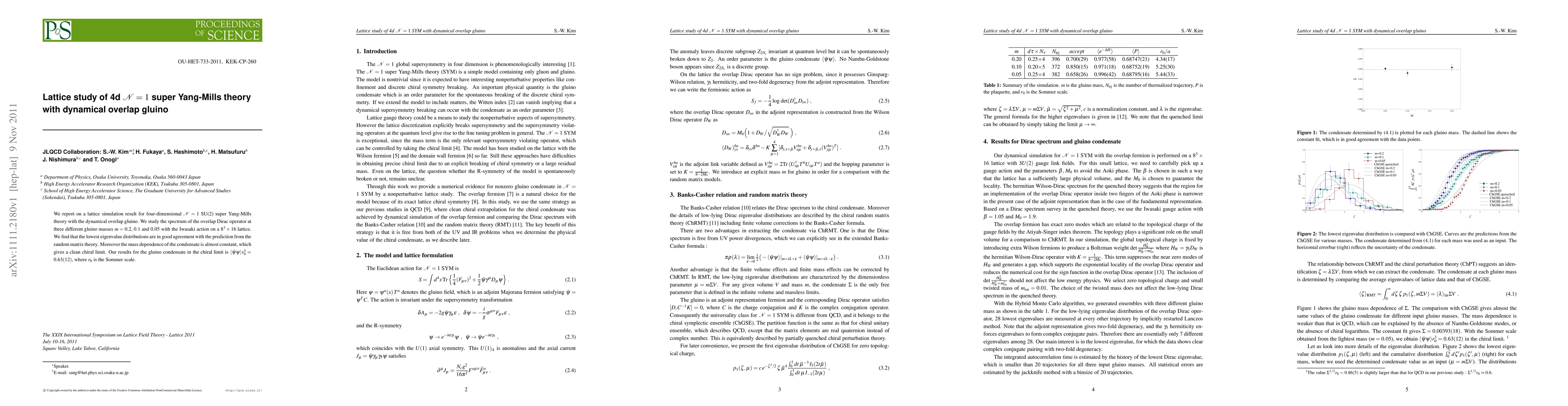 We report on a lattice simulation result for four-dimensional {\cal N}=1 SU(2) super Yang-Mills theory with the dynamical overlap gluino. We study the spectrum of the overlap Dirac operator at three different gluino masses m=0.2, 0.1 and 0.05 with the Iwasaki action on a 8^3 \times 16 lattice. We find that the lowest eigenvalue distributions are in good agreement with the prediction from the random matrix theory. Moreover the mass dependence of the condensate is almost constant, which gives a clean chiral limit. Our results for the gluino condensate in the chiral limit is < \bar{\psi} \psi > r_0^3 = 0.63(12), where r_0 is the Sommer scale.