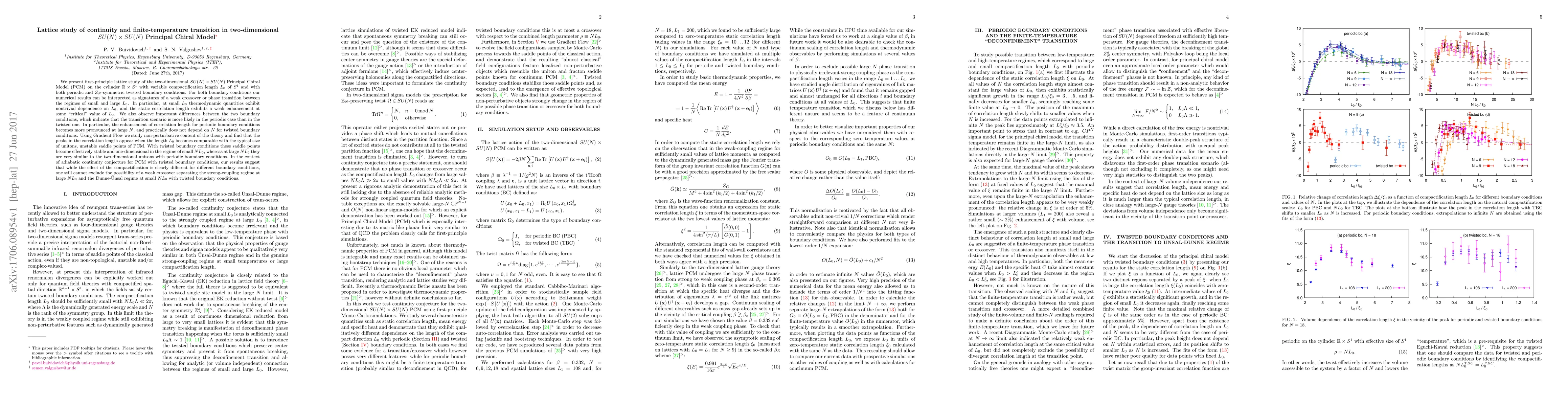 This research presents a lattice study of the two-dimensional SU(N) x SU(N) Principal Chiral Model, revealing a weak crossover or phase transition dependent on the compactification length L0. The study finds significant differences between periodic and twisted boundary conditions, suggesting a more pronounced transition in the former, particularly at large N.