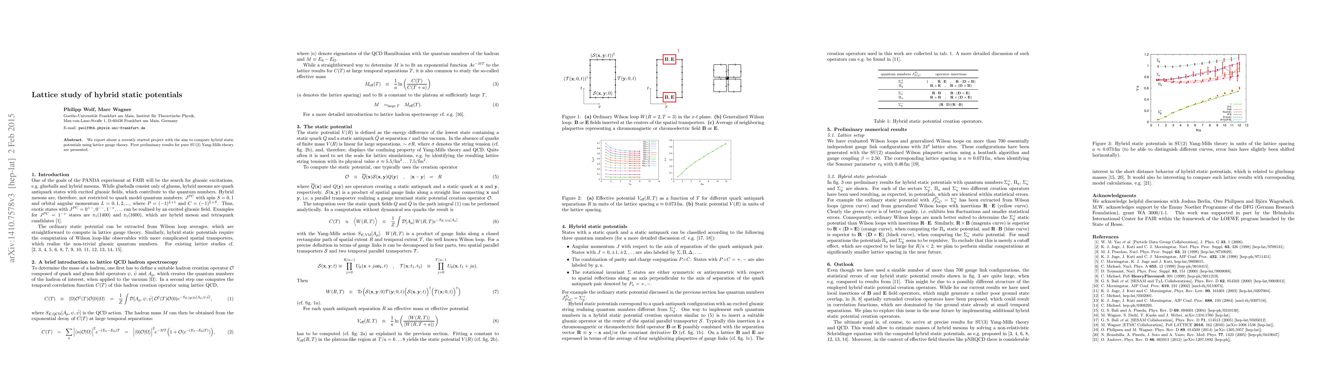 We report about a recently started project with the aim to compute hybrid static potentials using lattice gauge theory. First preliminary results for pure SU(2) Yang-Mills theory are presented.