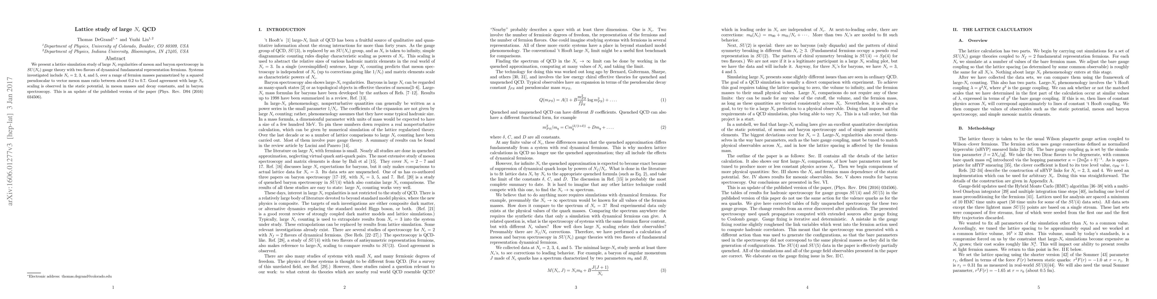 This paper reports a lattice QCD study exploring the large $N_c$ behavior in $SU(N_c)$ gauge theory with two flavors of fermions, revealing strong agreement with large $N_c$ scaling in meson masses, decay constants, and baryon spectroscopy across $N_c$ values from 2 to 5. The study updates previous findings with refined data.