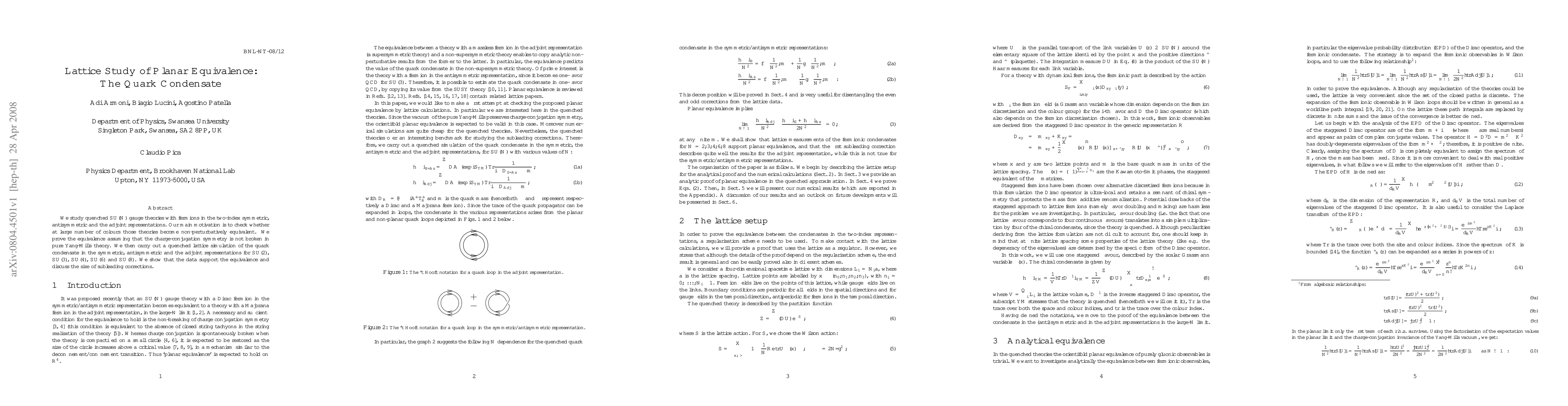 Researchers studied quenched SU(N) gauge theories with fermions in various representations to check for equivalence at large N; they found support for the equivalence and discussed its implications on quark condensate calculations.