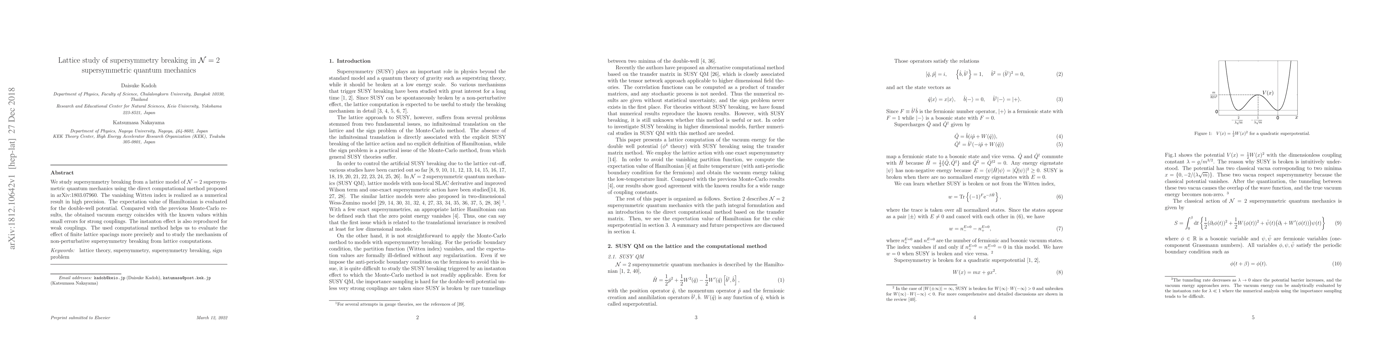 This paper investigates supersymmetry breaking in N=2 supersymmetric quantum mechanics using a lattice model and a direct computational method. It achieves high-precision results, confirming the vanishing Witten index and accurately evaluating the Hamiltonian's expectation value for a double-well potential, aligning closely with previous Monte-Carlo results for strong couplings.