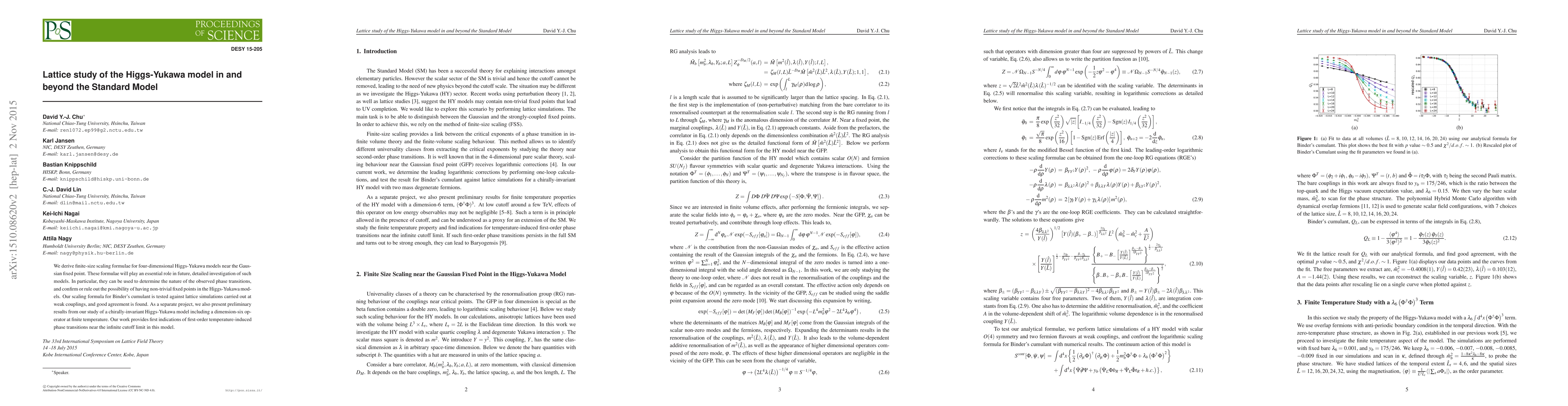 Researchers develop finite-size scaling formulae for Higgs-Yukawa models to study phase transitions and non-trivial fixed points near the Gaussian fixed point, with promising results from lattice simulations.