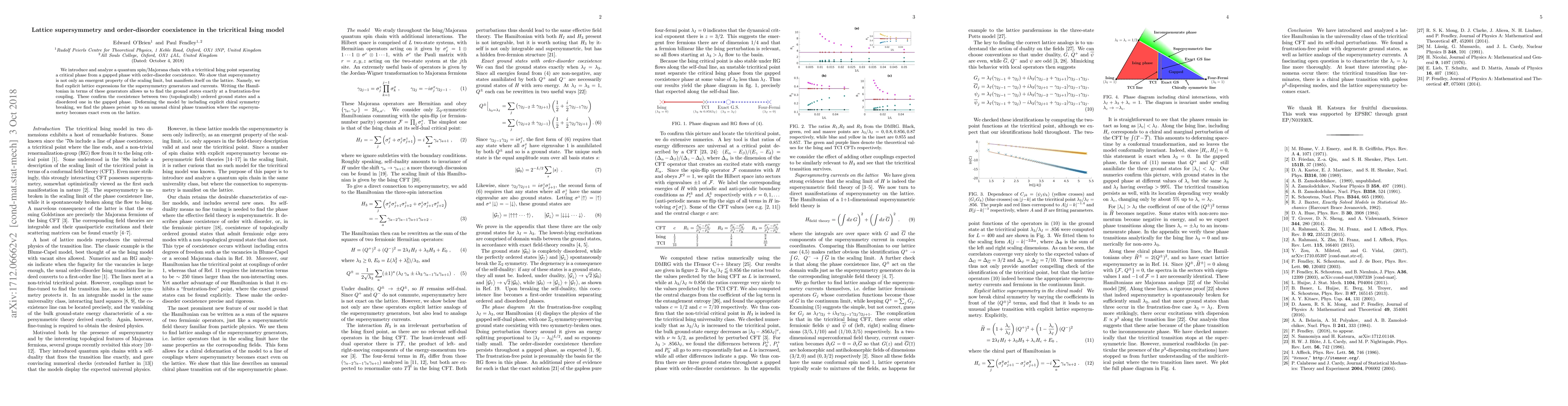 We introduce and analyze a quantum spin/Majorana chain with a tricritical Ising point separating a critical phase from a gapped phase with order-disorder coexistence. We show that supersymmetry is not only an emergent property of the scaling limit, but manifests itself on the lattice. Namely, we find explicit lattice expressions for the supersymmetry generators and currents. Writing the Hamiltonian in terms of these generators allows us to find the ground states exactly at a frustration-free coupling. These confirm the coexistence between two (topologically) ordered ground states and a disordered one in the gapped phase. Deforming the model by including explicit chiral symmetry breaking, we find the phases persist up to an unusual chiral phase transition where the supersymmetry becomes exact even on the lattice.