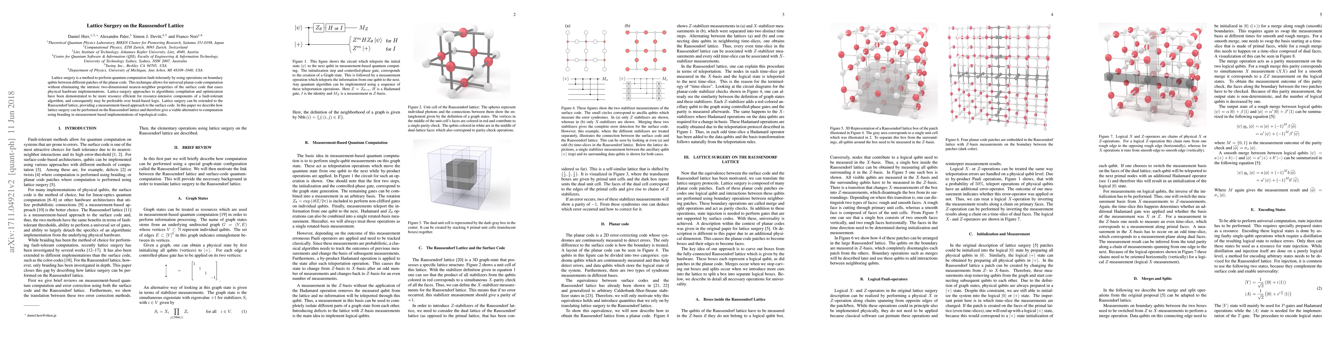 Lattice surgery on the Raussendorf lattice provides a measurement-based approach to surface code computation, offering an alternative to braiding in topological codes and potentially improving resource efficiency for fault-tolerant algorithms.