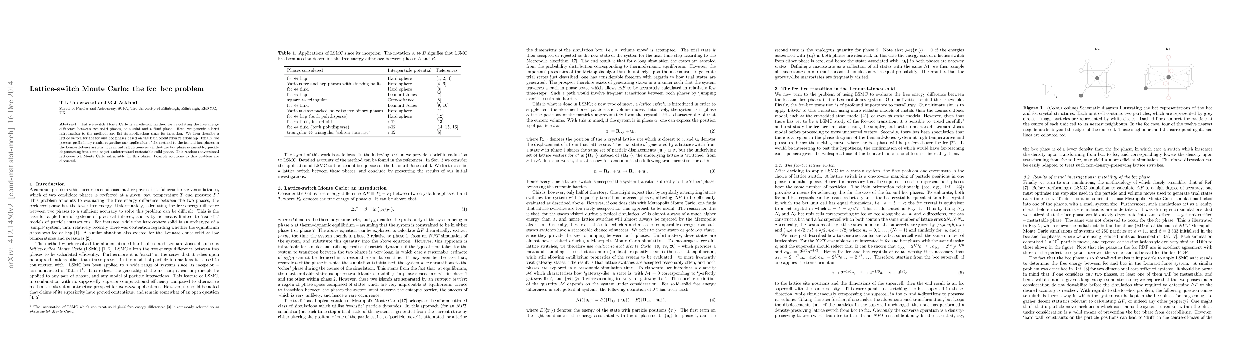 The research introduces Lattice-Switch Monte Carlo (LSMC) method for calculating free energy differences between solid phases or a solid and a fluid phase. It describes a lattice switch for fcc and bcc phases based on the Bain orientation relationship and presents preliminary results for the fcc and bcc phases in the Lennard-Jones system.