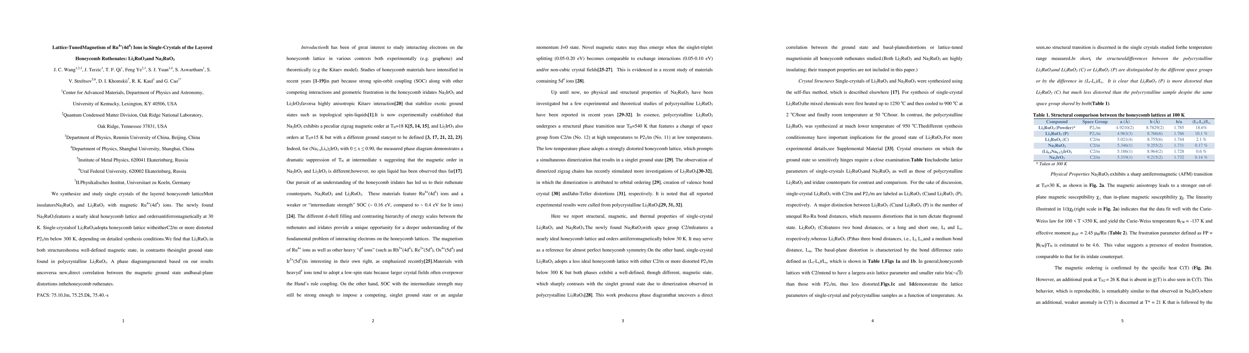 Researchers discovered single-crystal versions of Li2RuO3 and Na2RuO3 with nearly ideal honeycomb lattices that exhibit antiferromagnetic behavior at low temperatures, revealing a direct correlation between magnetic states and basal-plane distortions.